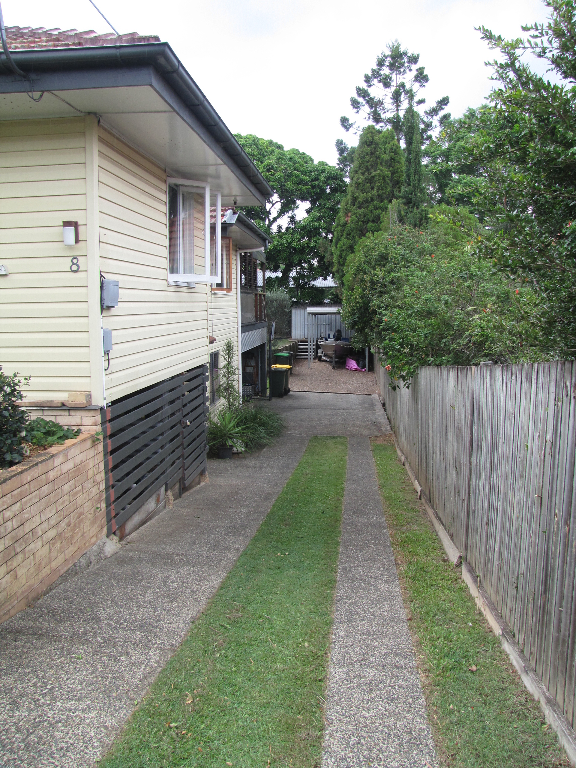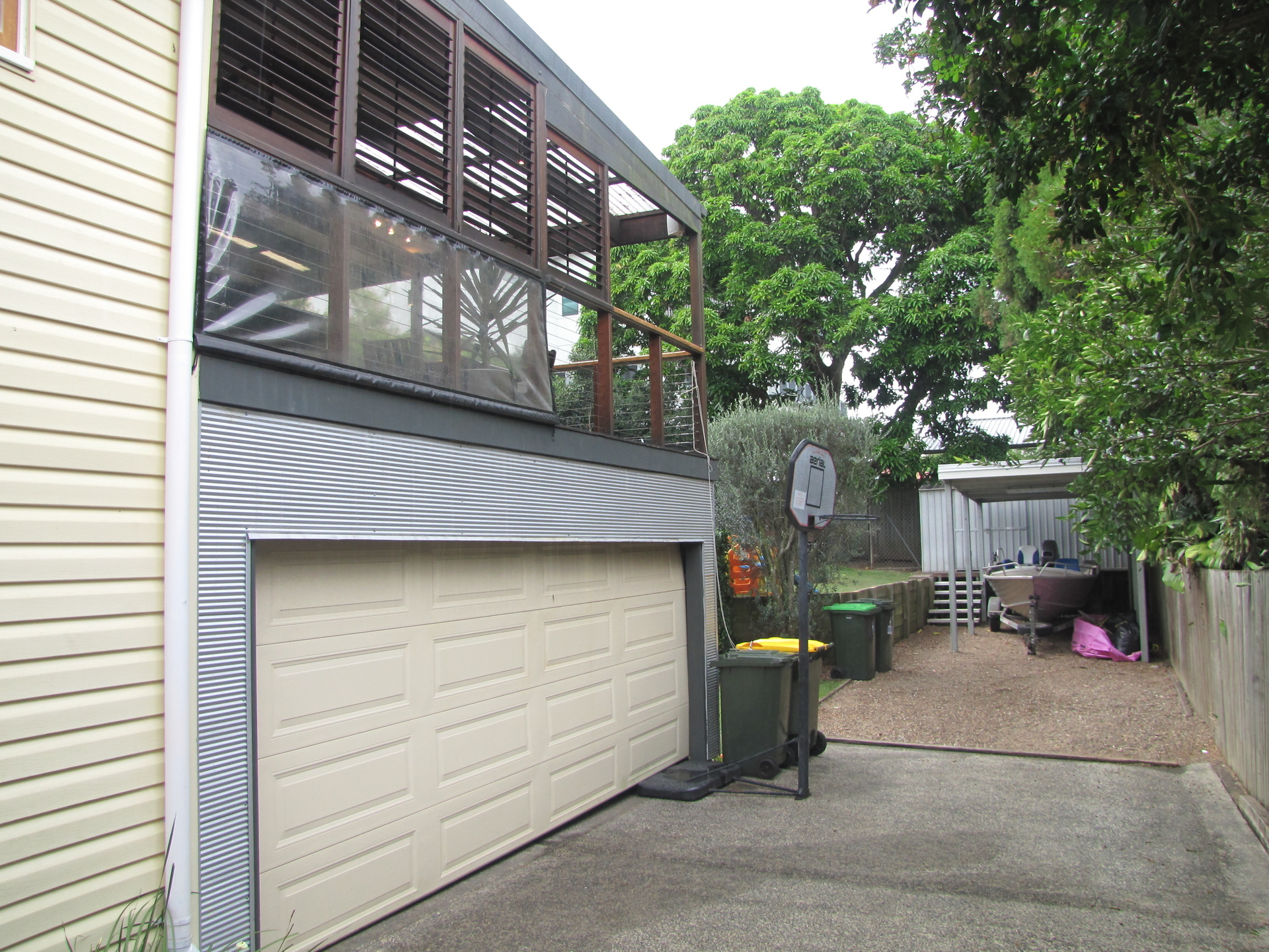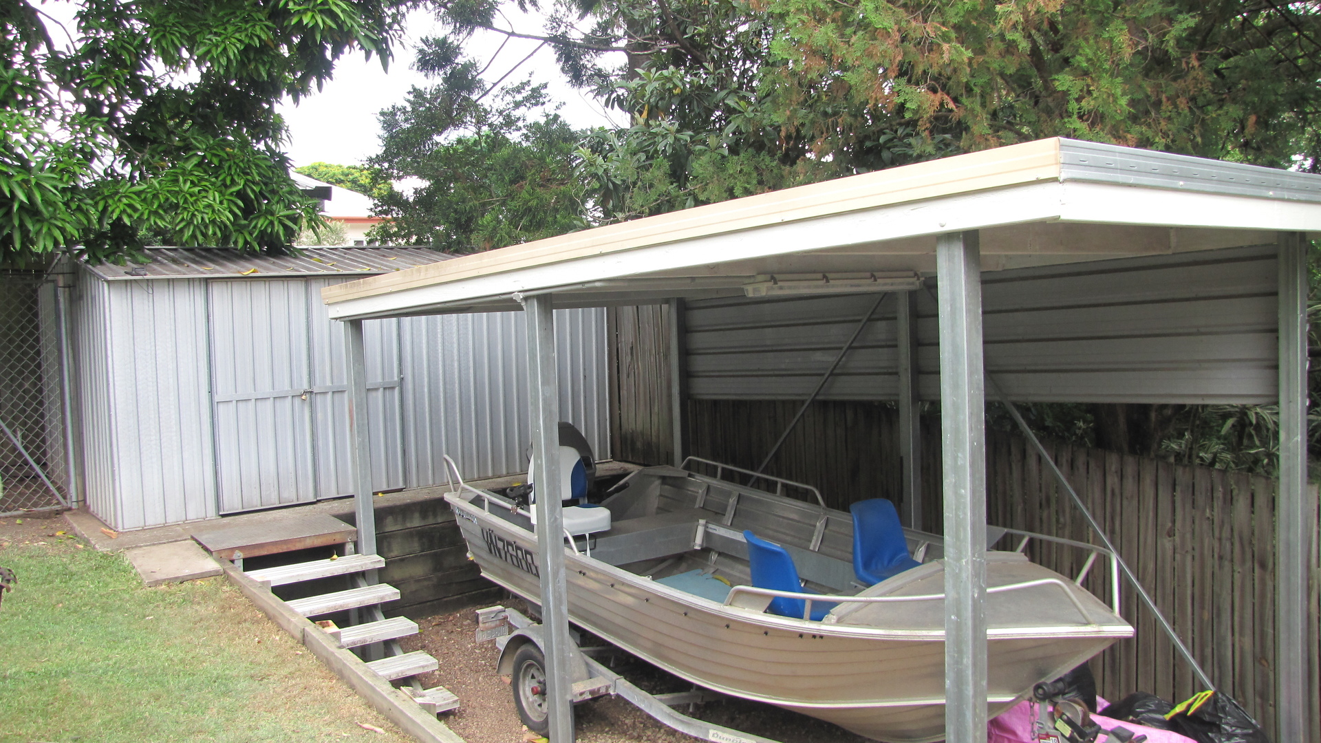 Side access to carport with a high roof for boat or caravan