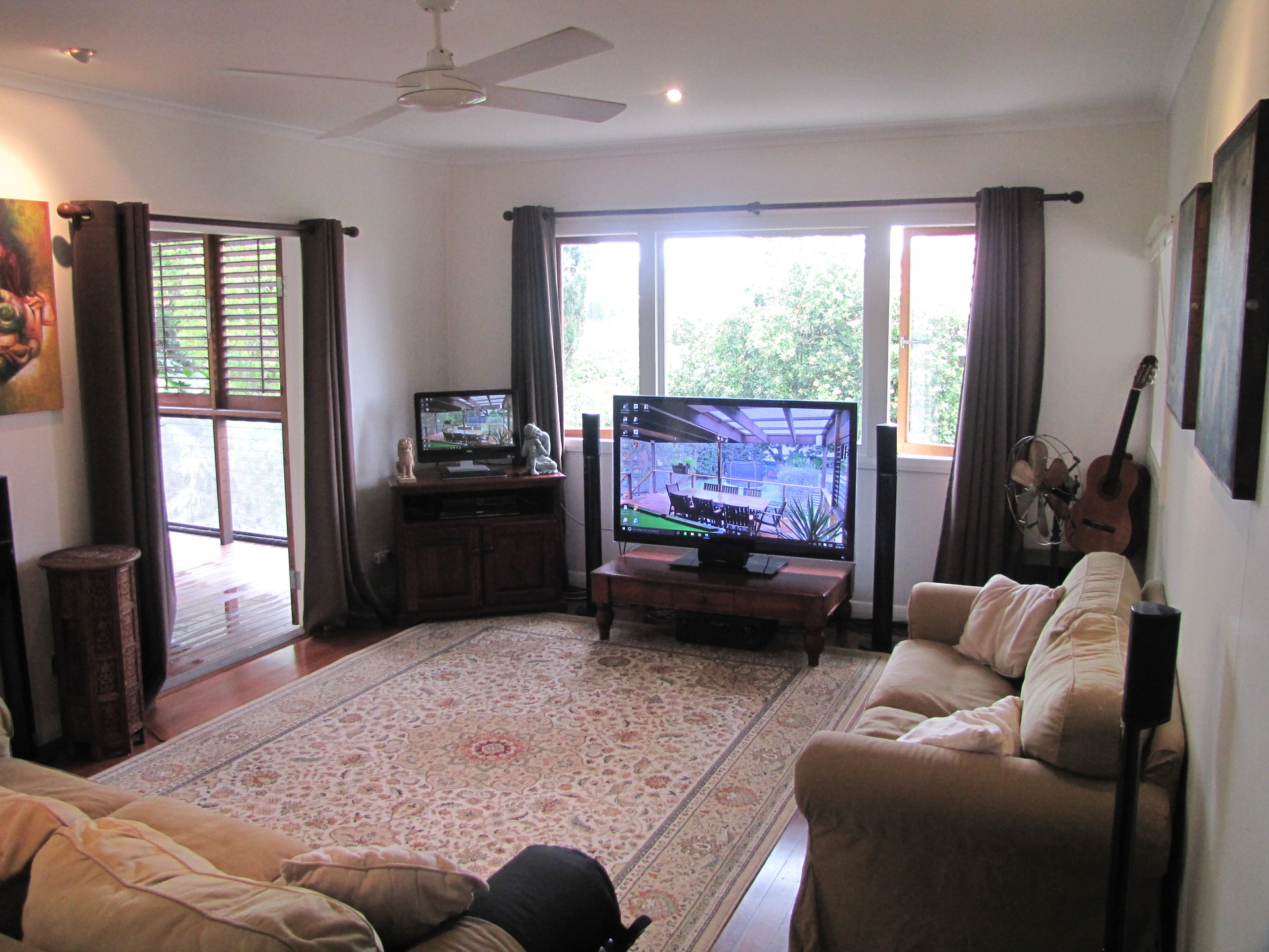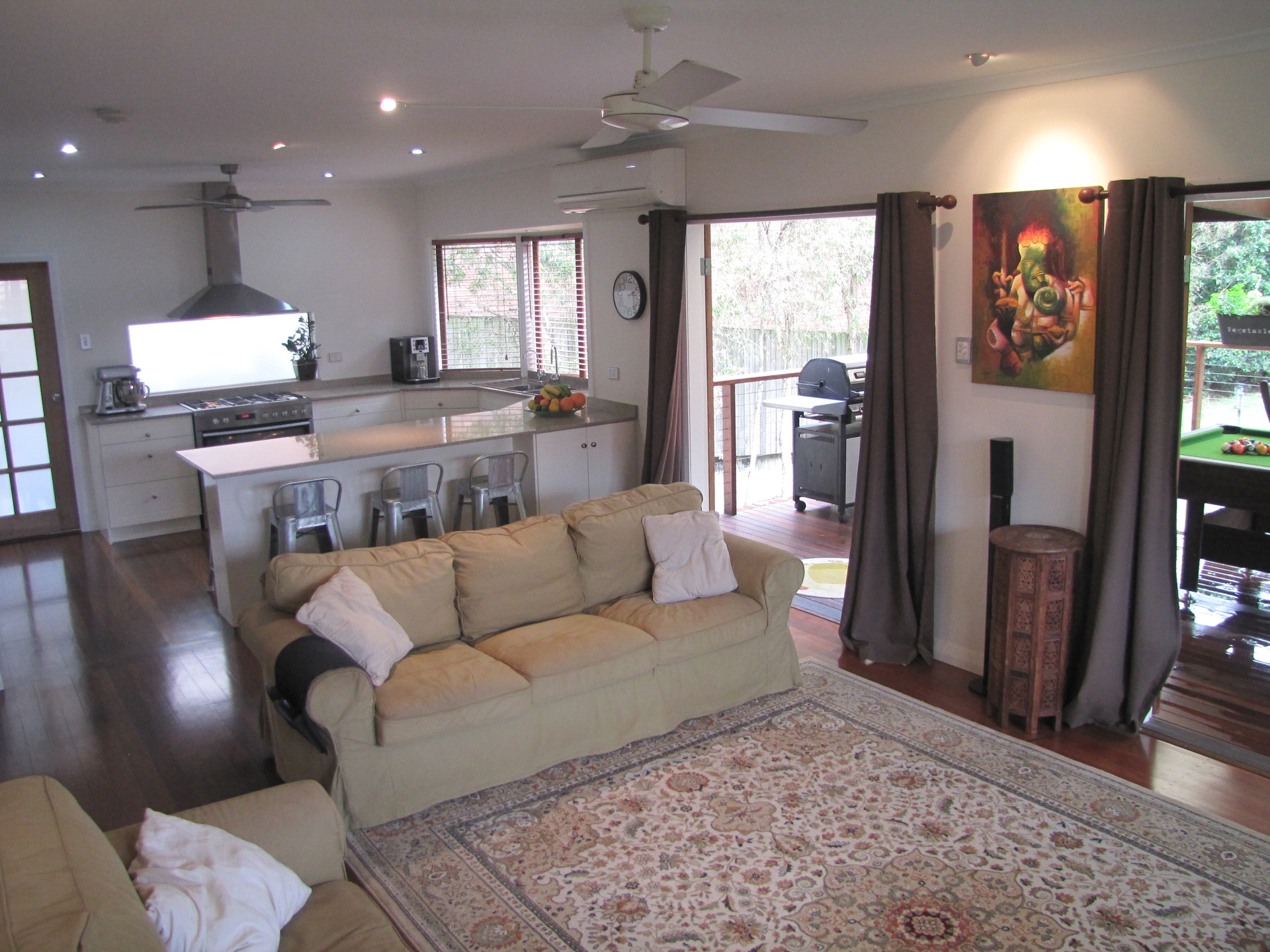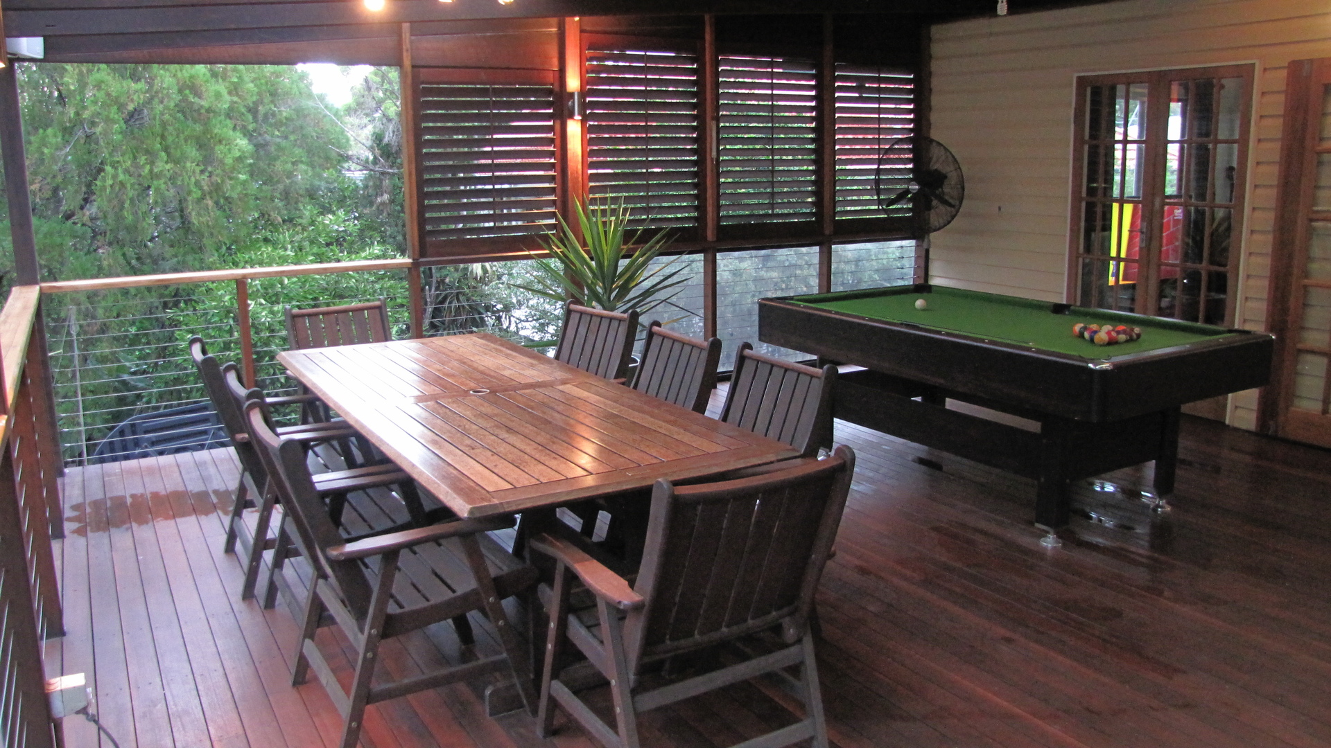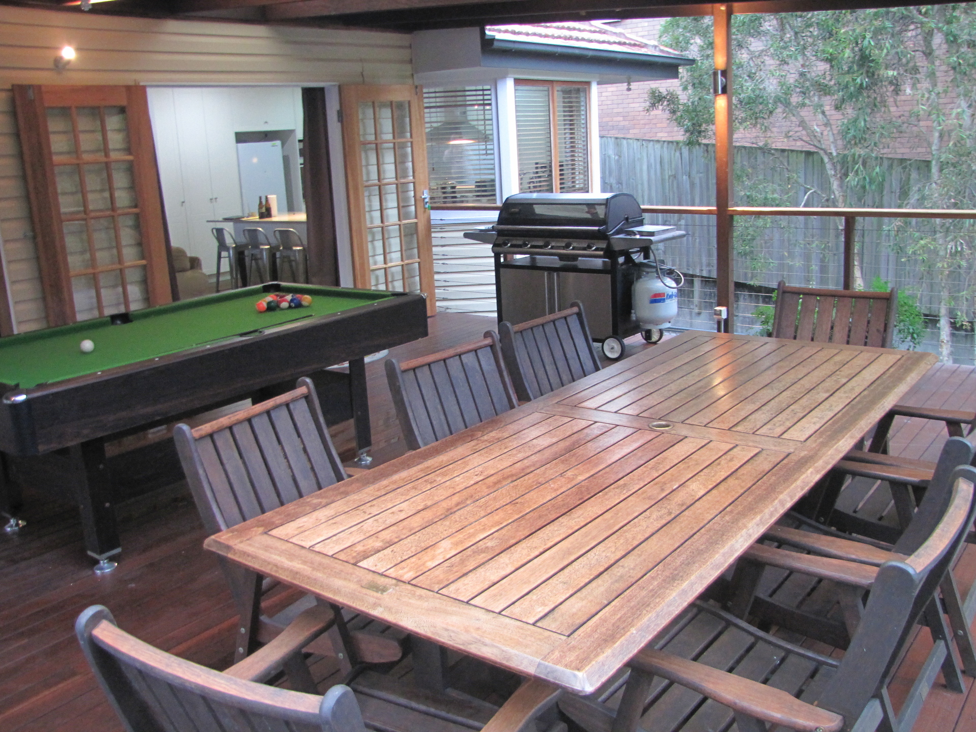 Opening out from the rear of the house is a beautiful entertainer's deck overlooking the lush garden.