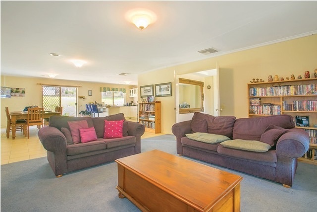This house has 4 bedrooms 1 large study, open plan kitchen and living, large entrance way, 2 car garage which has been converted inti a man cave with large Jarrah timber bar, solar heated large swimming pool and a large shed which can also be used as a garage.