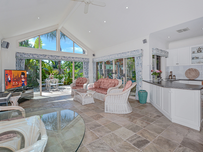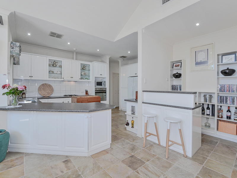 Our house is situated between the City and the Bay and is close to public transport, shops, schools and play parks. The house is situated at the rear of the property and access is via a beautiful rose lined driveway ensuring privacy and creating a serene oasis that is perfect for relaxing or entertaining. The house offers many unique features including sliding doors throughout to take advantage of the moderate climate that Adelaide offers. Sandstone floors and courtyards along with a raked ceiling in the family room create a bright and airy atmosphere and give the house a distinct Mediterranean feel.
