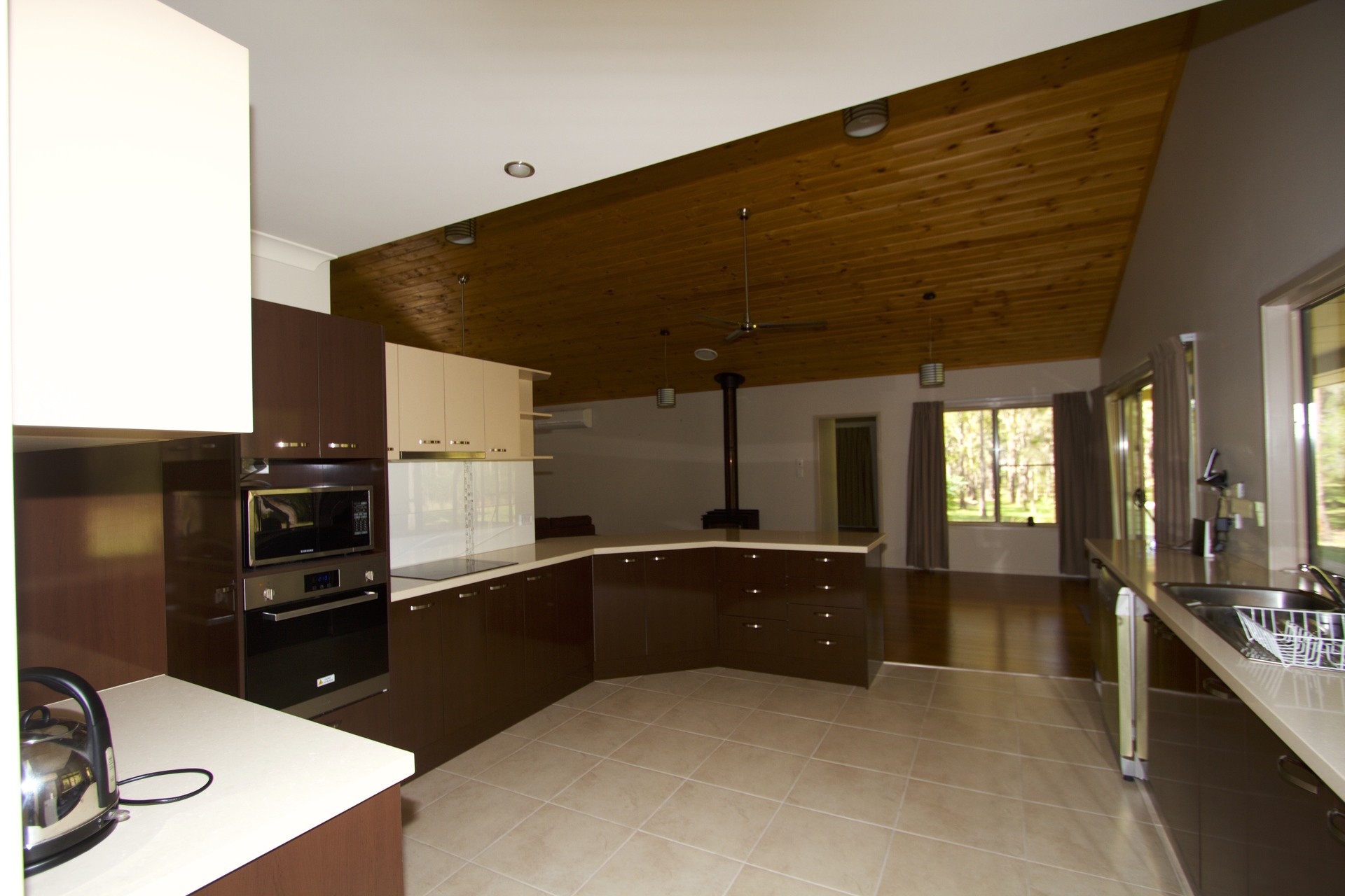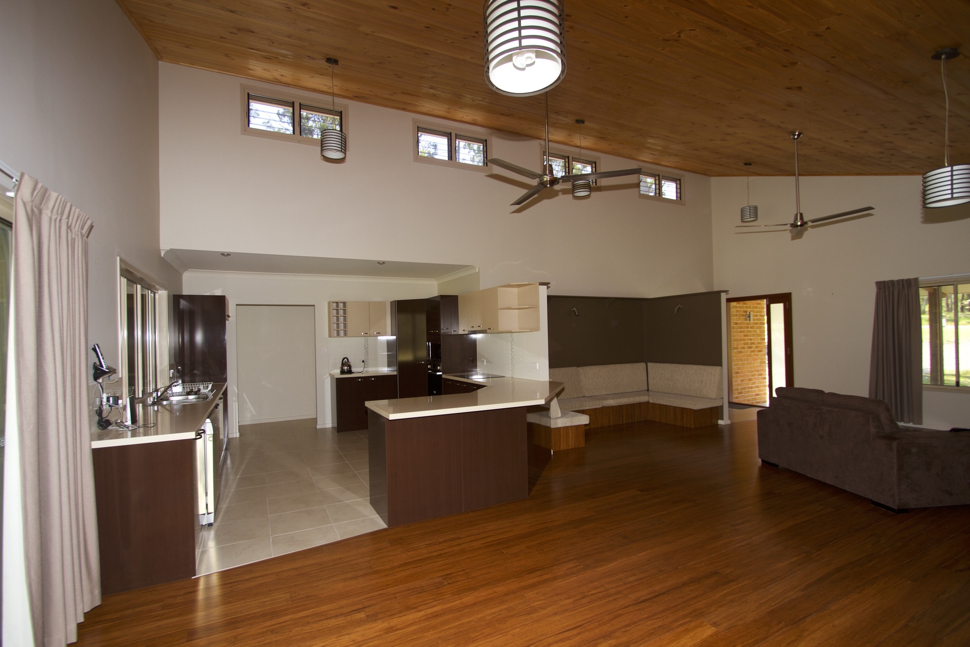 It combines high raked ceilings with open plan living to provide a sense of relaxed grandeur.