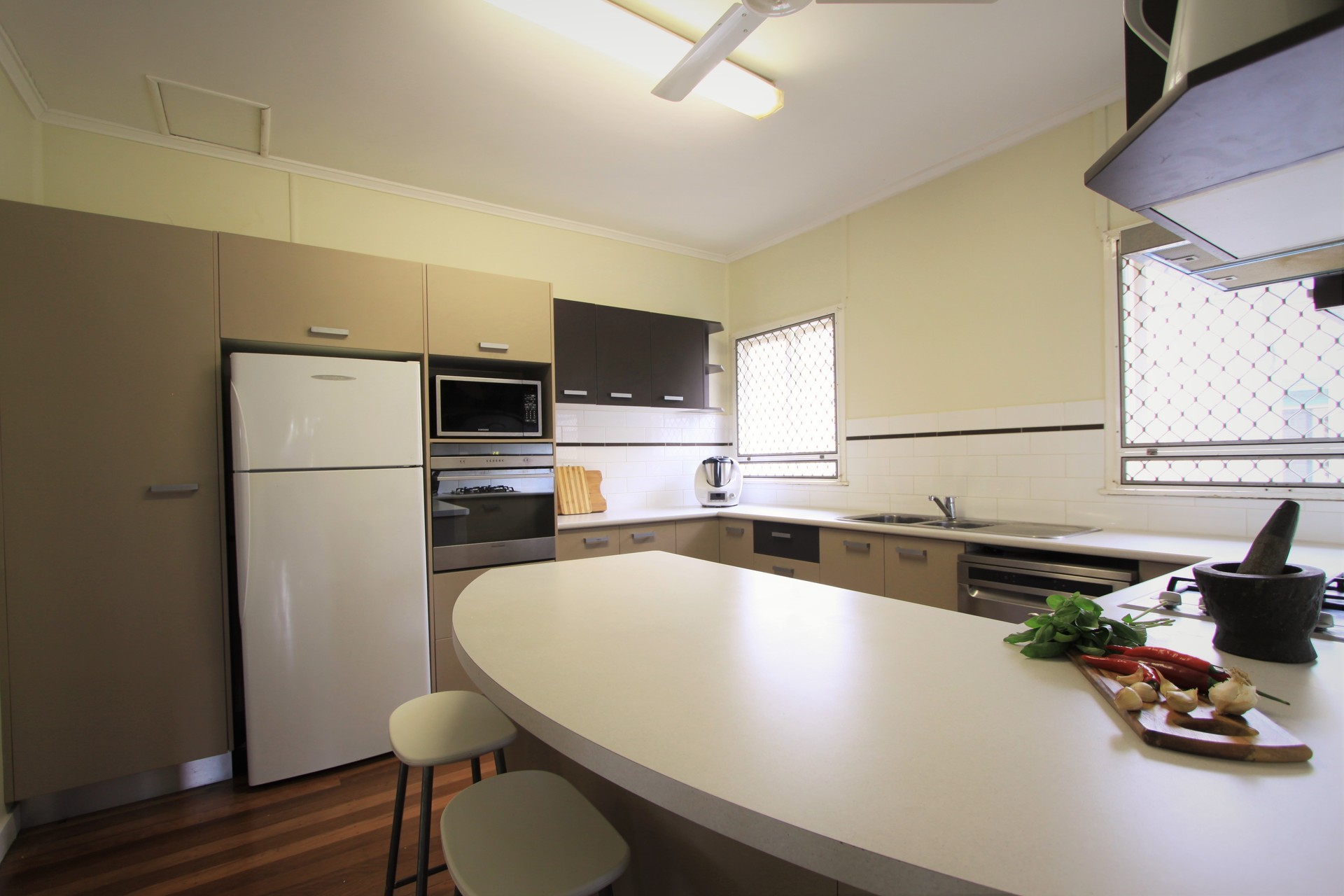 The large renovated kitchen features new modern appliances including a four-burner gas stove and fan-forced oven. There is plenty of bench space to prepare meals or for a quick meal at the breakfast bar.