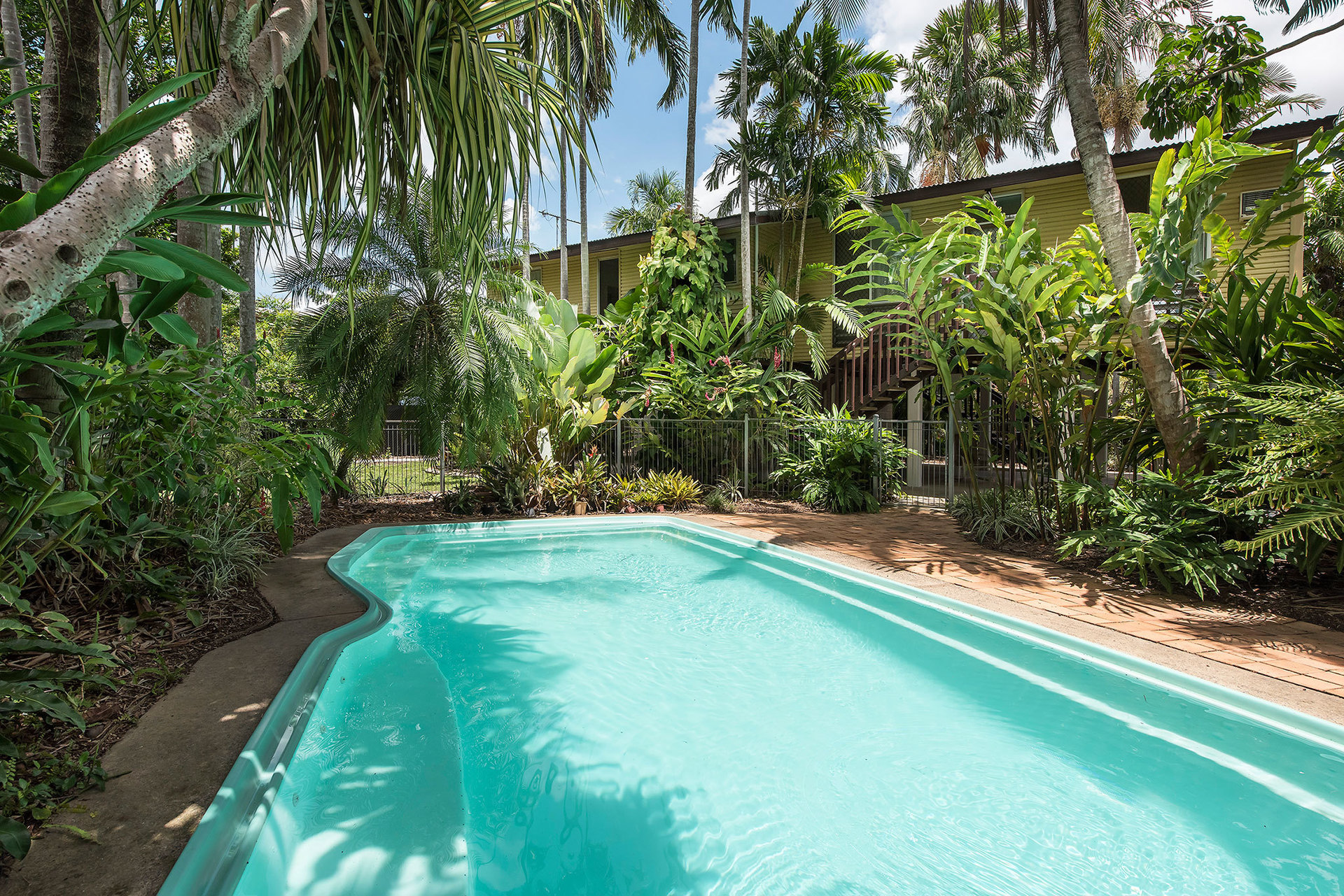 - Large in-ground fenced saltwater swimming pool with automatic chlorination, filtration and cleaning, spa, set in lush tropical gardens