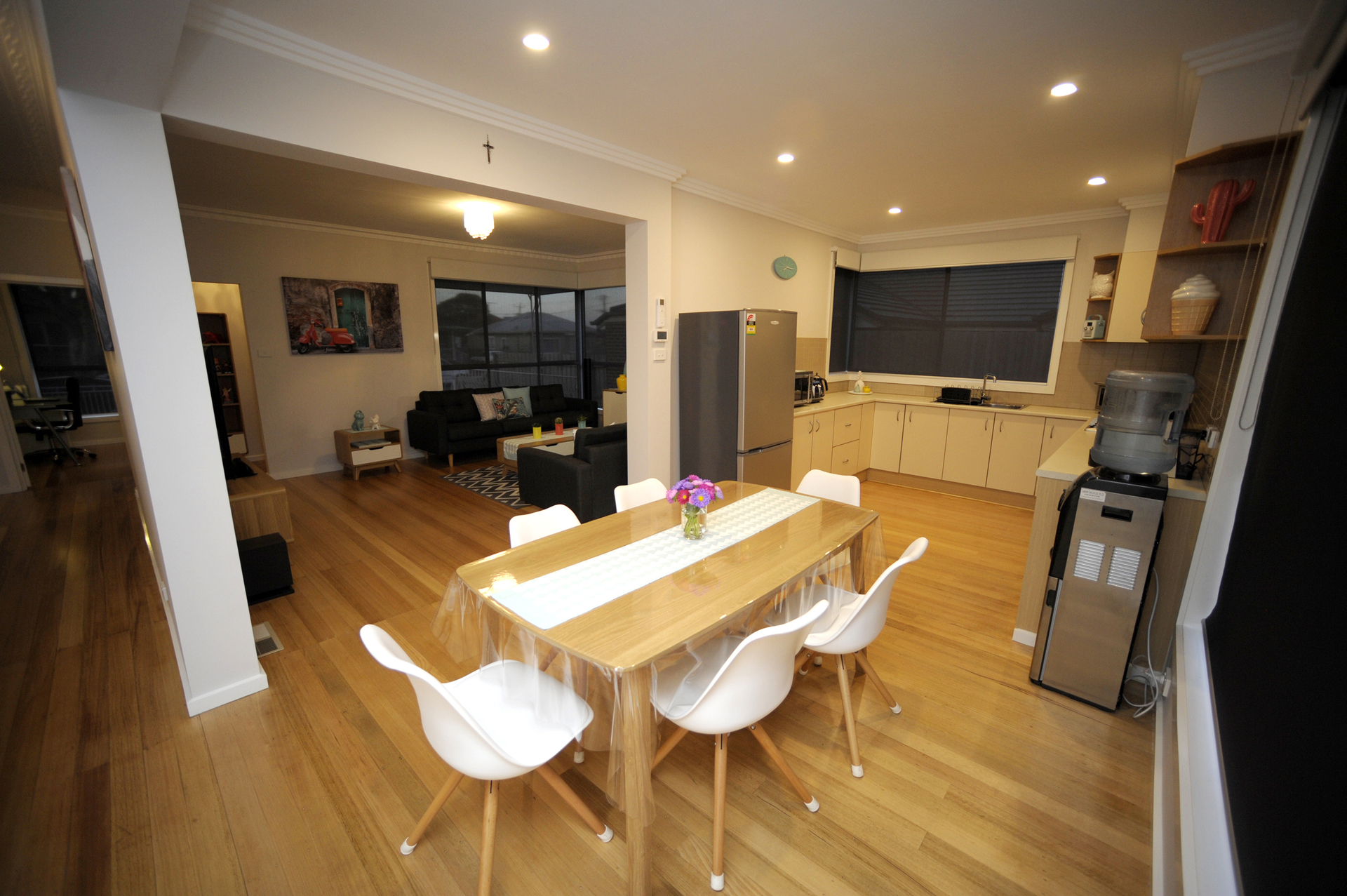Feel at home the moment you walk into this inviting family residence complete with 9ft ceilings and polished timber floorboards throughout. The spacious open plan living and meals areas are filled with natural sunlight and the large separate kitchen comes complete with plenty of bench space, ample storage and stainless steel gas cook top and dishwasher.