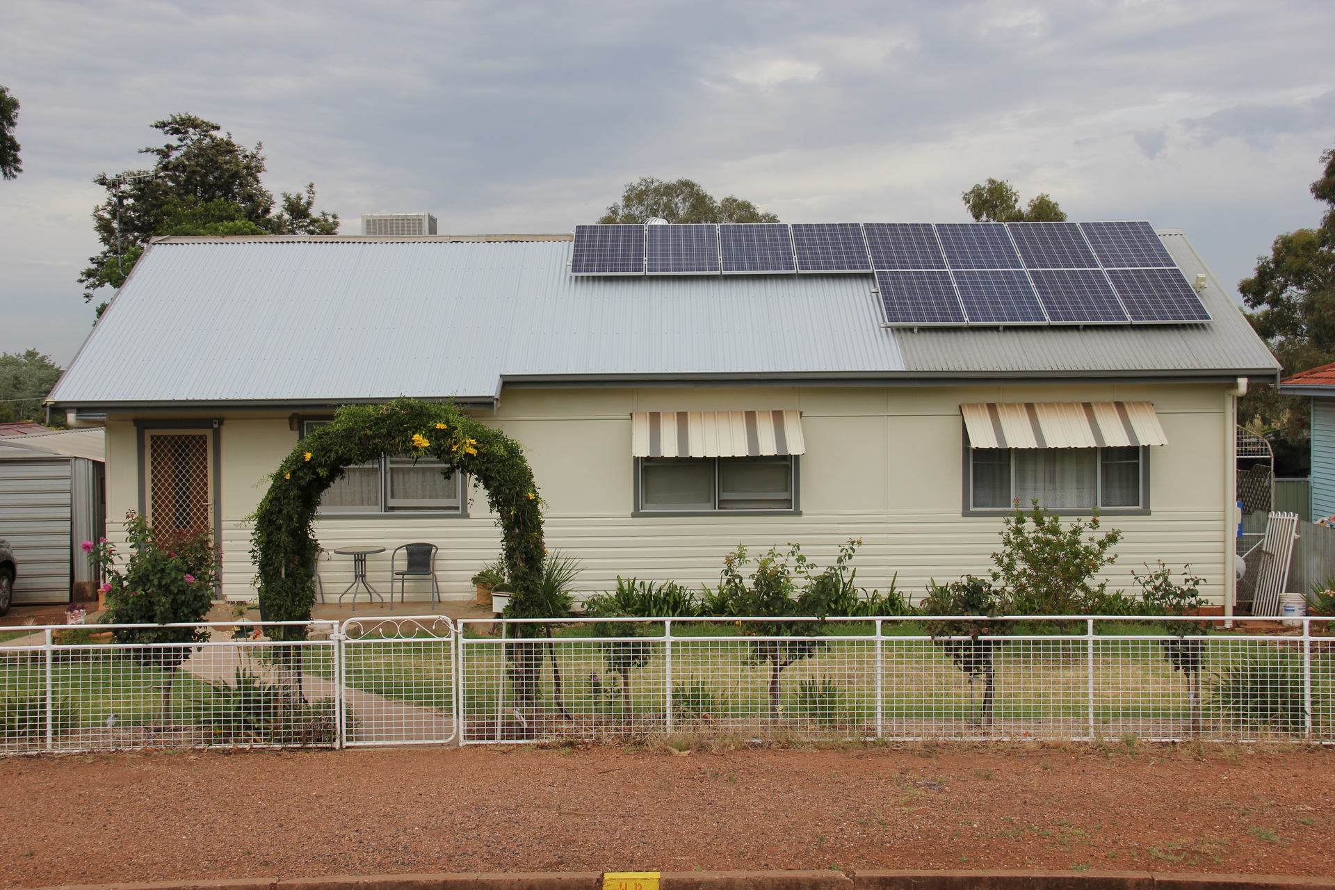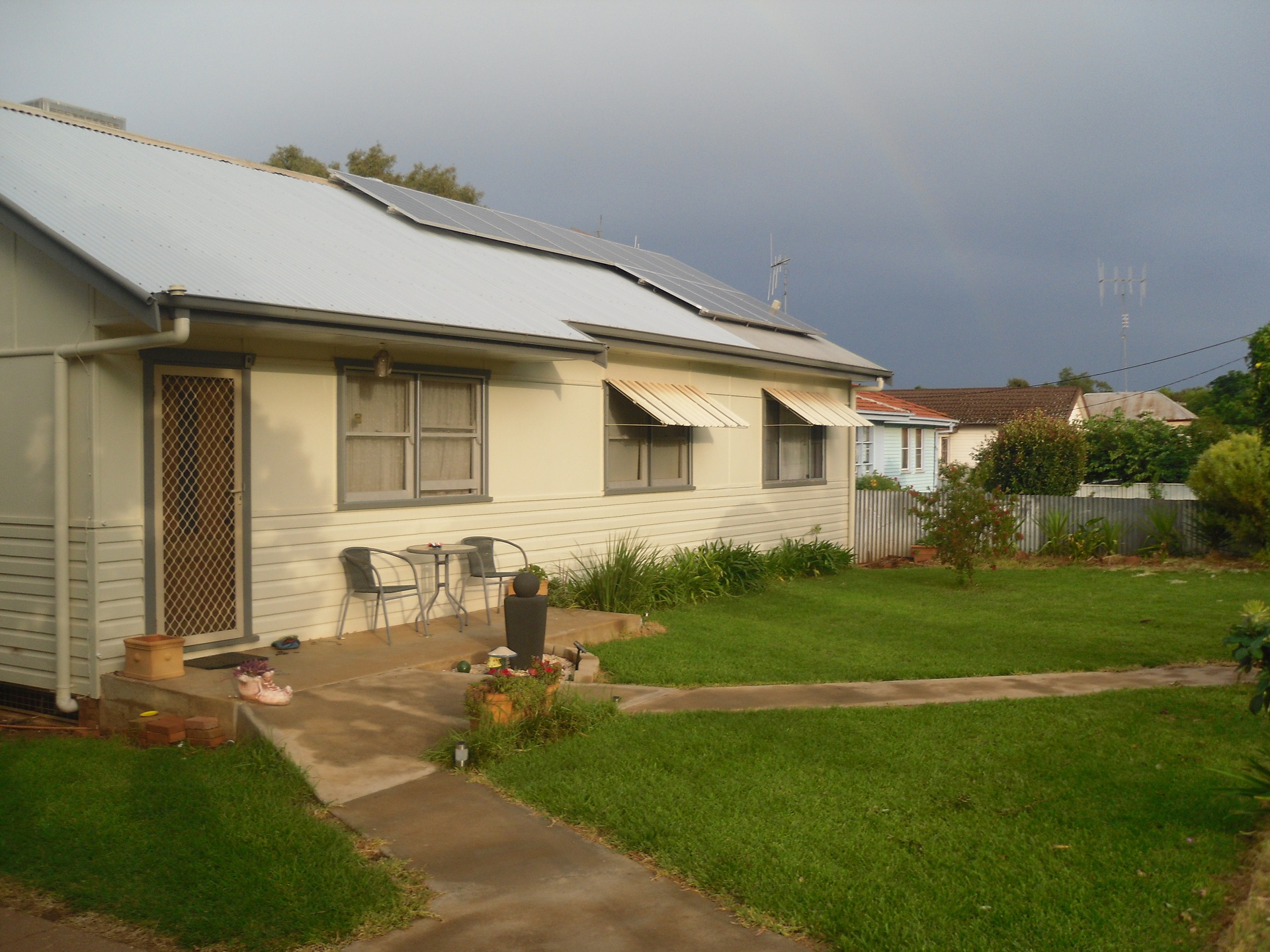 Features include a good size lounge room, modern dining and kitchen areas with high quality timber grain vinyl flooring with evaporative ducted air conditioning and a ceiling fan in dining area. Slow combustion wood heater in living area, and 2 gas outlets in lounge room. Large walk in pantry with dishwasher. Modern bathroom with bath and separate shower. 2 toilets. Rain water tank plumbed into kitchen. 3+ storage sheds plus 1 single garage. Set on large 1011m2 size block with rear lane access for the caravan or boat. Great spacious yard with established lawns and gardens. Animal friendly secured yard. Brick gas BBQ set under a pergola area overlooking the fully fenced low maintenance yard, with established vegetable garden beds ready for the planting. 3.0 KW Solar panel system on roof to help supplement your electricity costs.