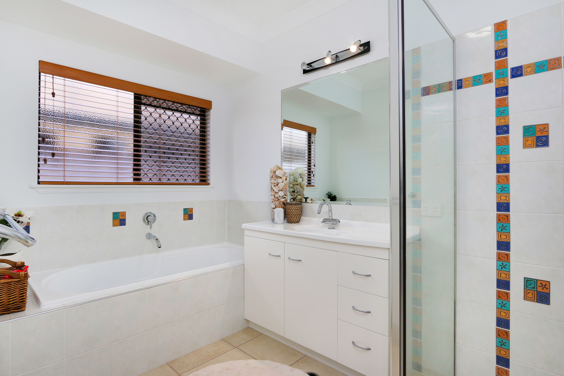 -Tiled throughout.