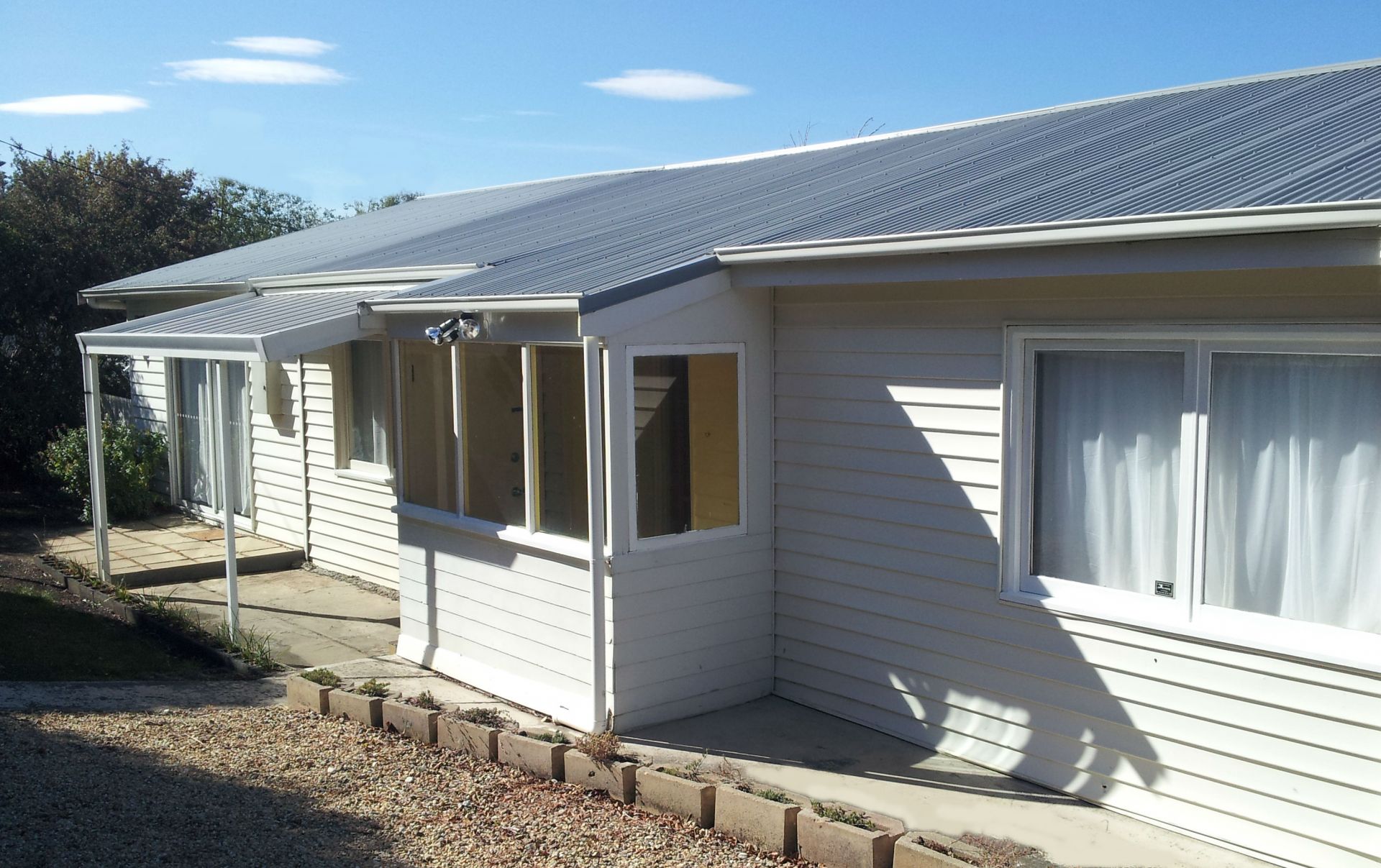 The roof and gutters are in excellent condition due to being recently replaced. Most of the house is Imitation weatherboard cladding so no need to paint.