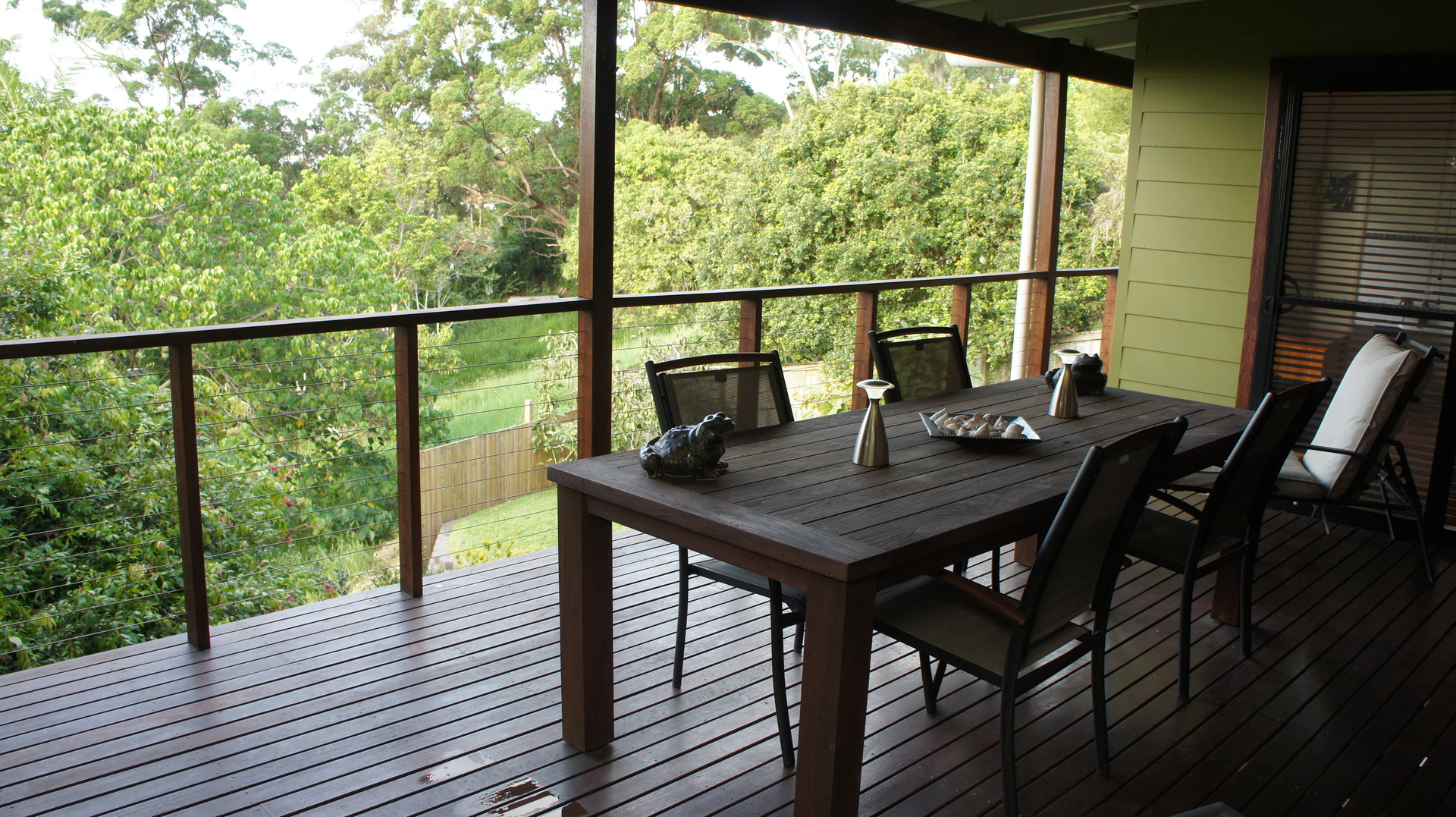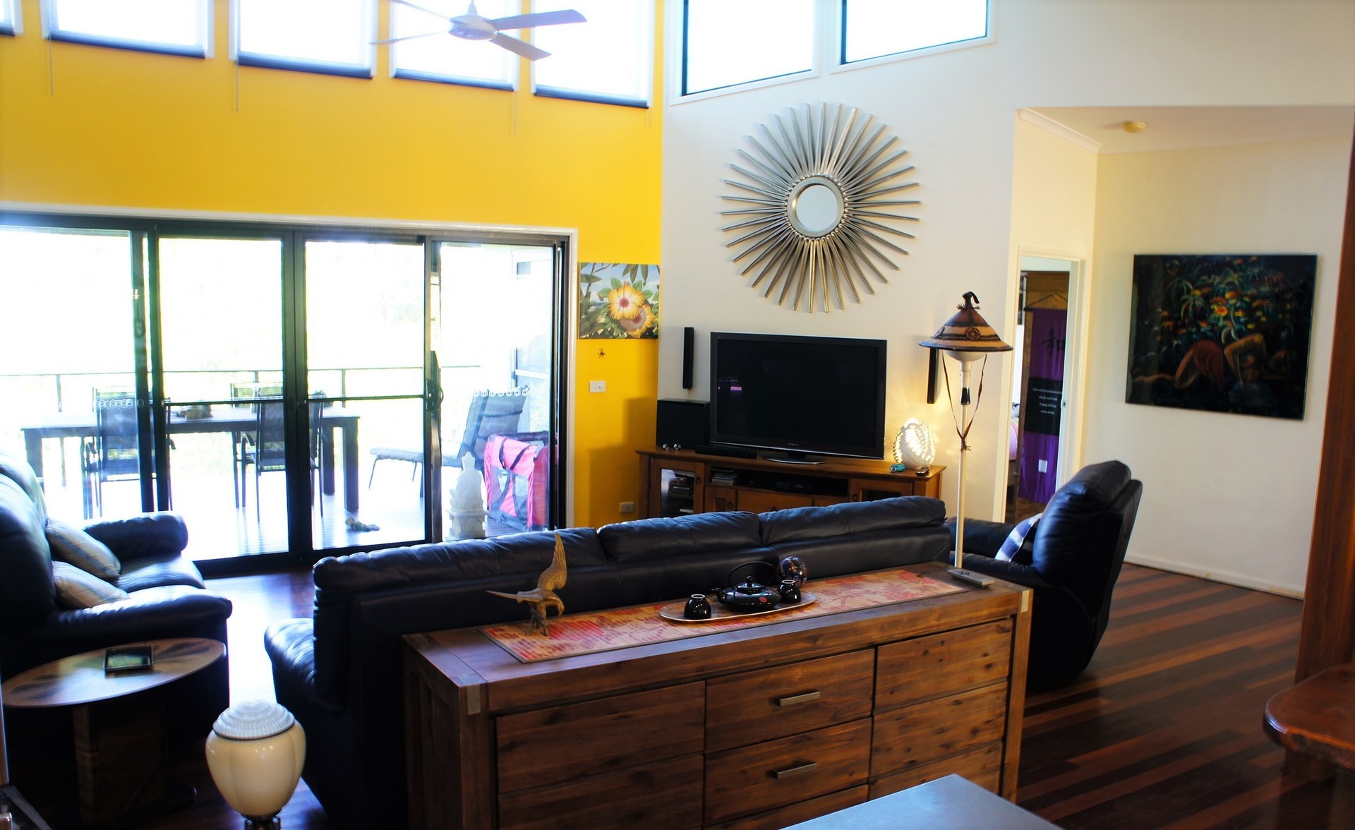 Contemporary architecturally designed house with a beautiful North East outlook to the horizon. Open plan living with high raked ceilings. Deck access to main living areas allows views from kitchen, living and lounge area whilst the internal courtyard provides a private sanctuary for relaxation or casual meals. The hill top position captures lovely mountain views and the large wrap around veranda is perfect for entertaining or for lazy afternoons at home. The private internal courtyard makes the most of early morning sun with direct access to the kitchen and dining area.