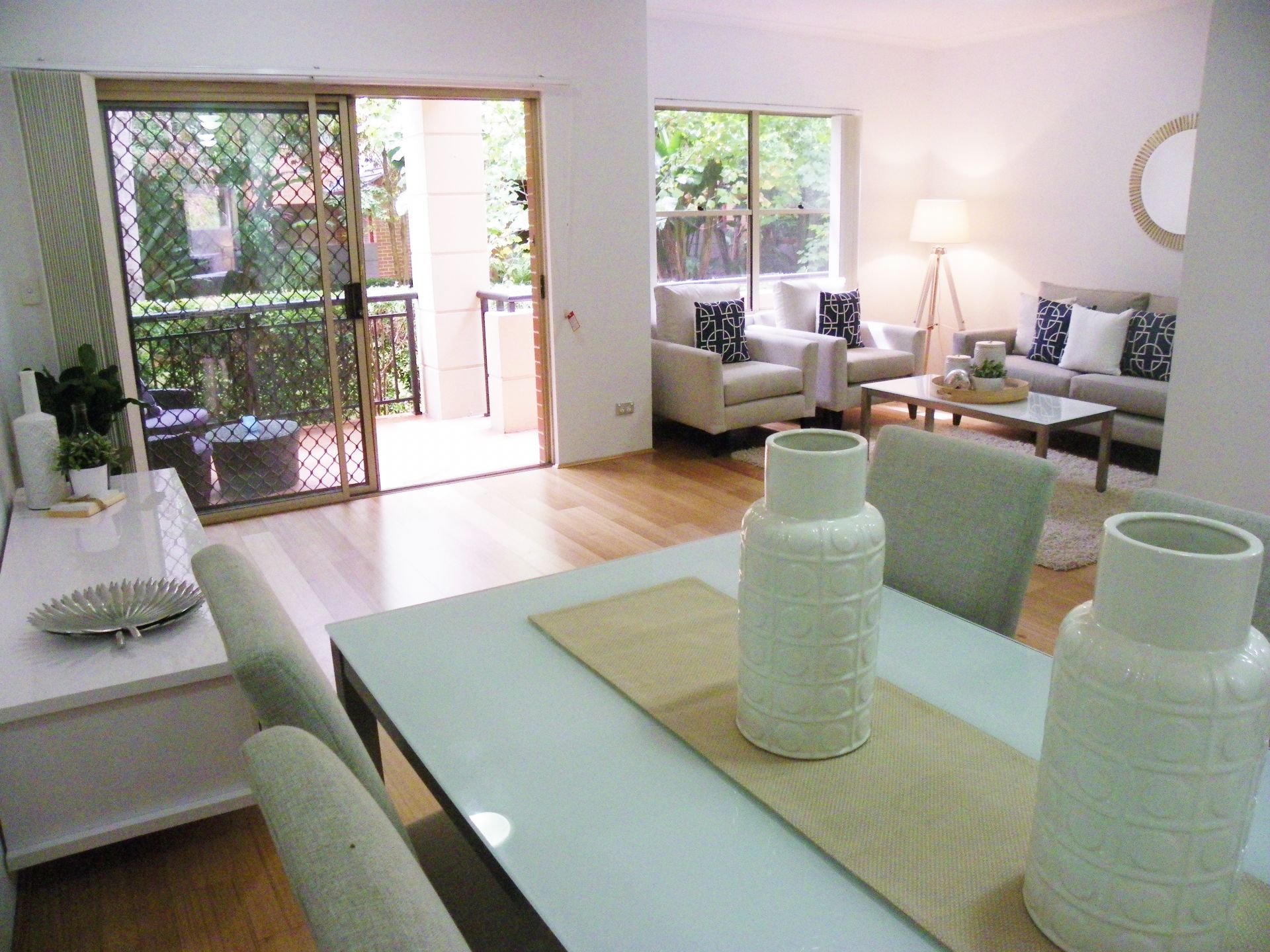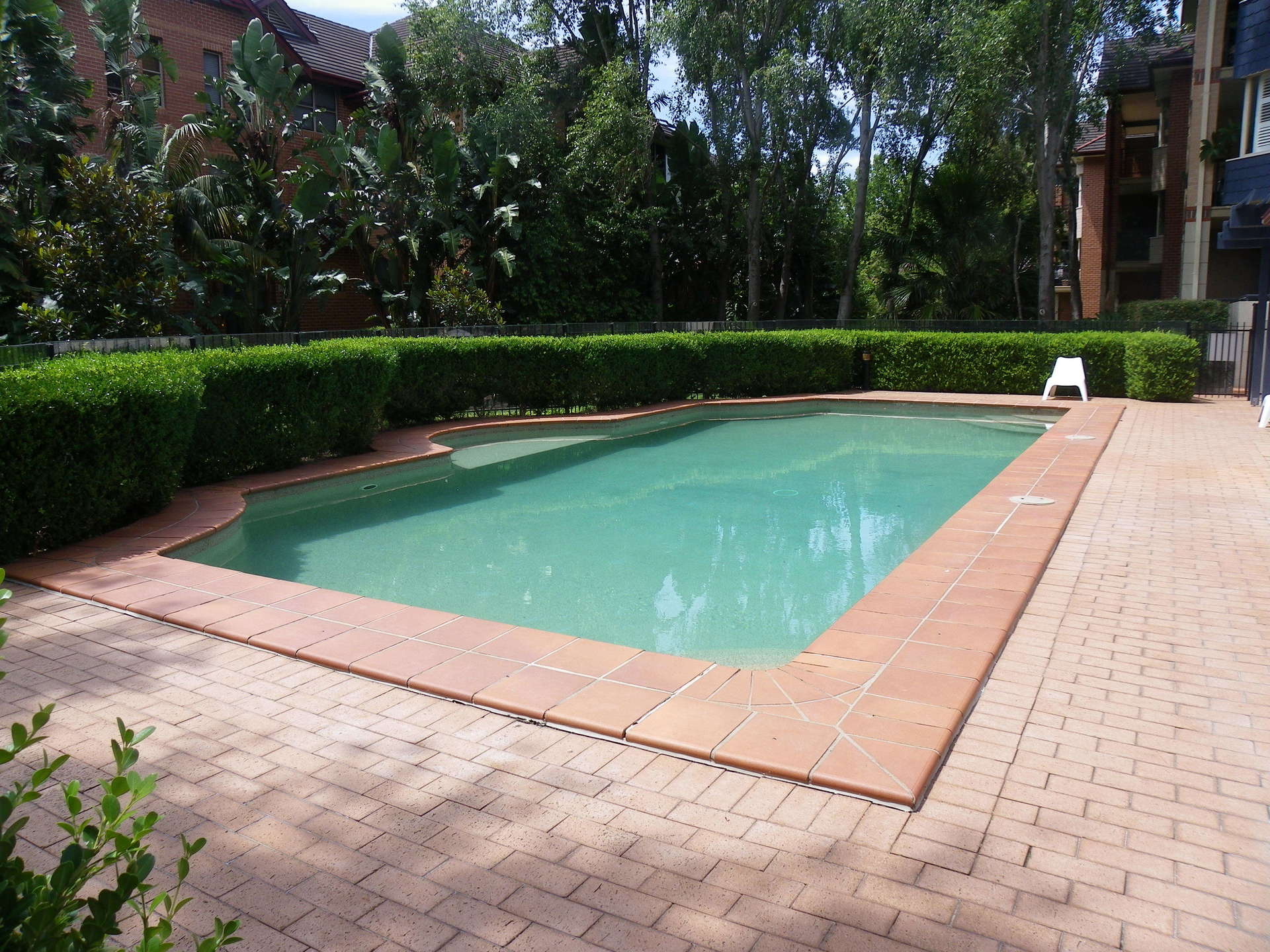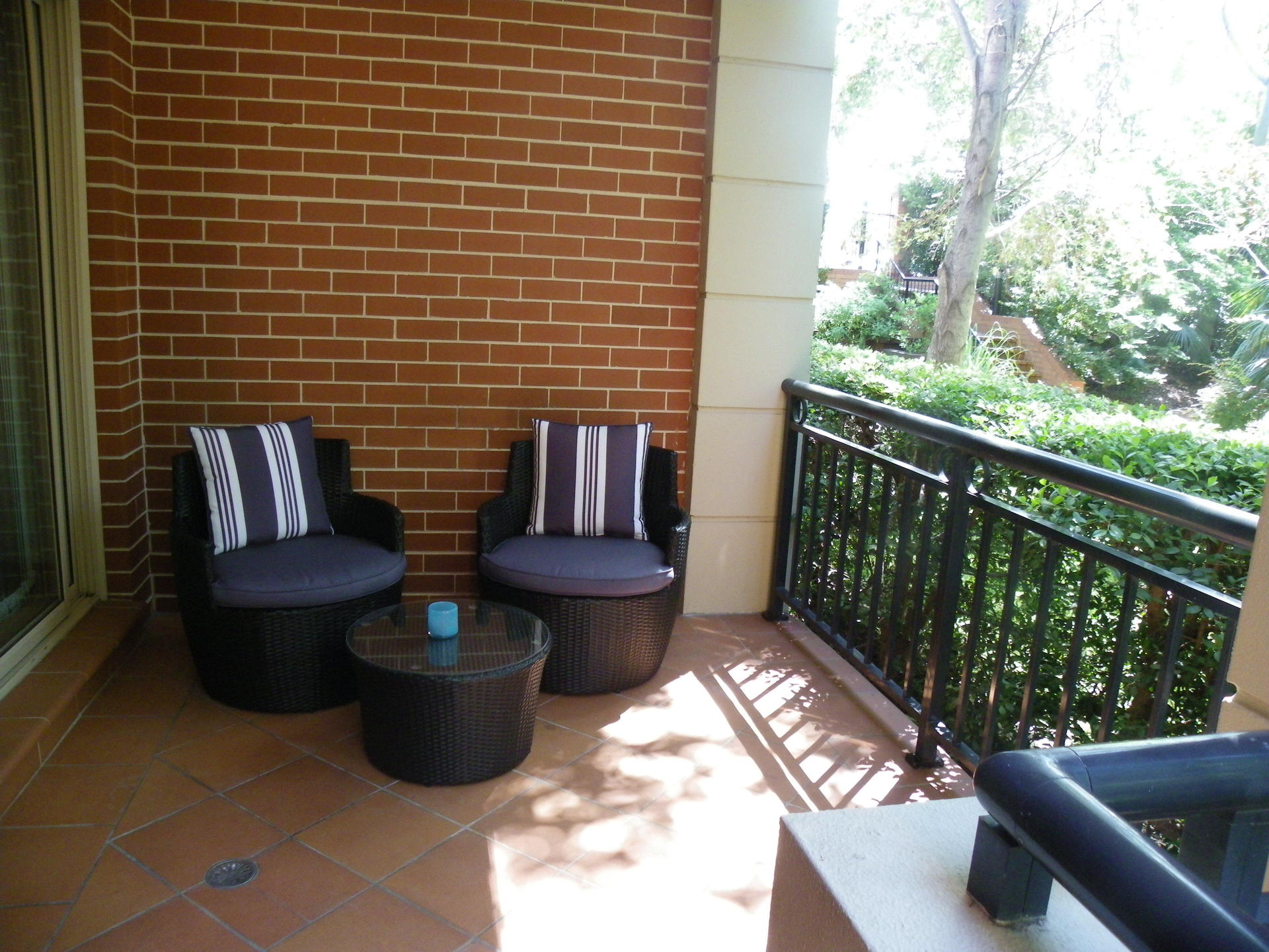 The apartment has balconies back and front and you can enjoy flow through breezes. The beautiful community gardens include a swimming pool.