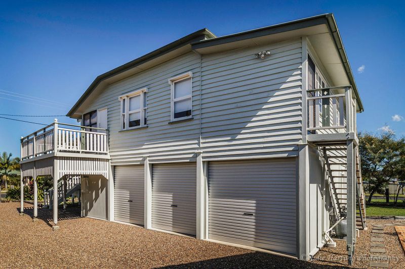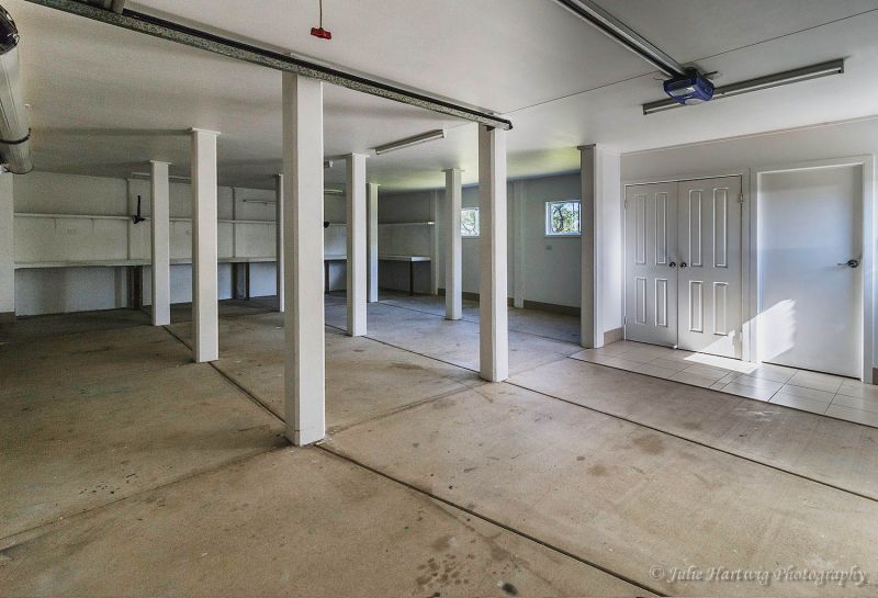 Downstairs includes a large handy work/craft bench, three roller doors, laundry and toilet.