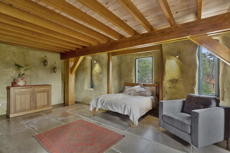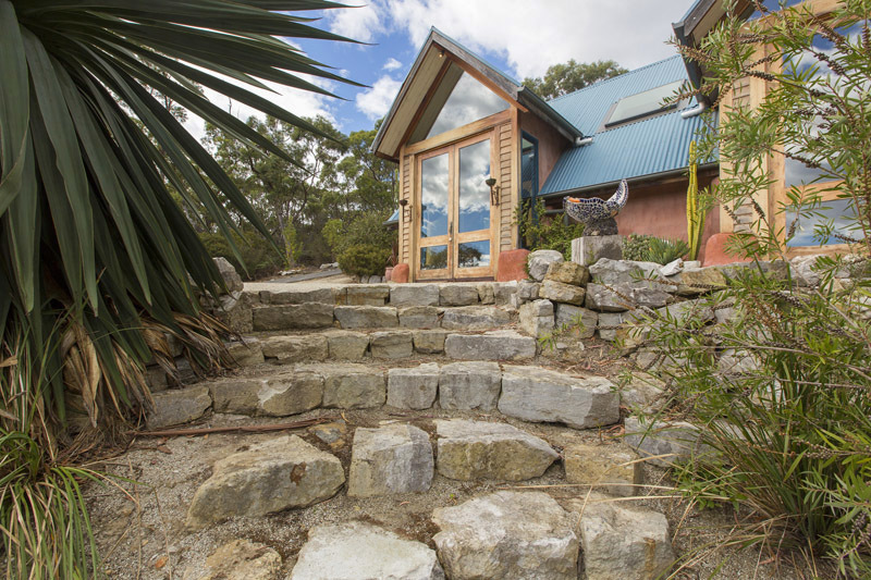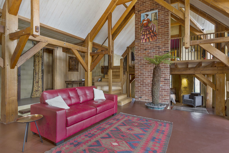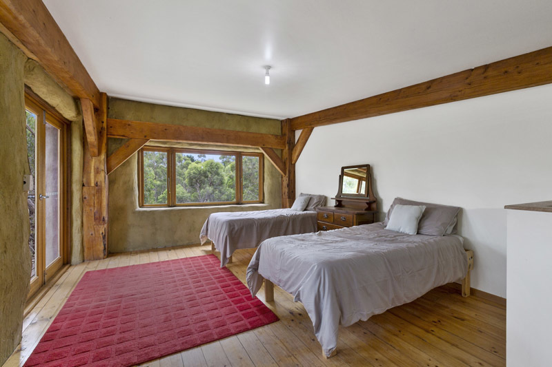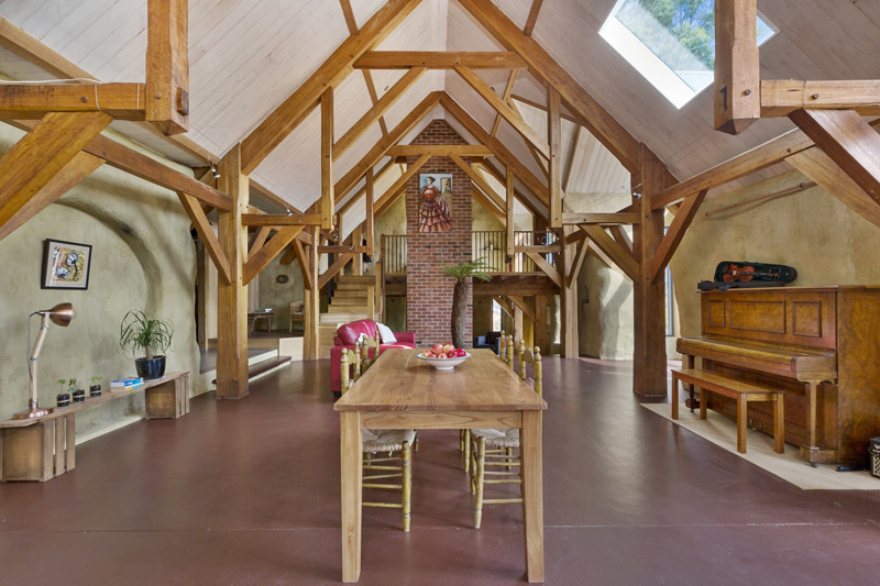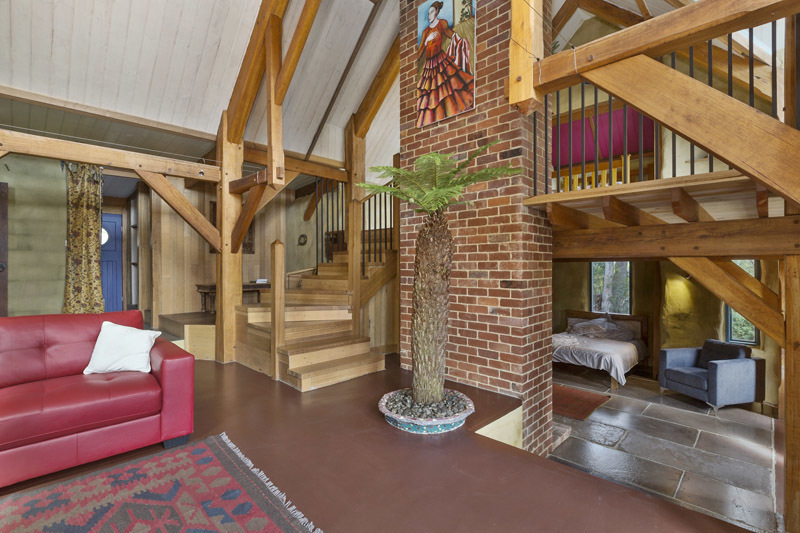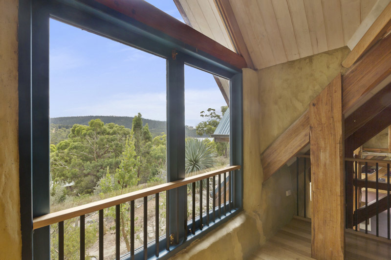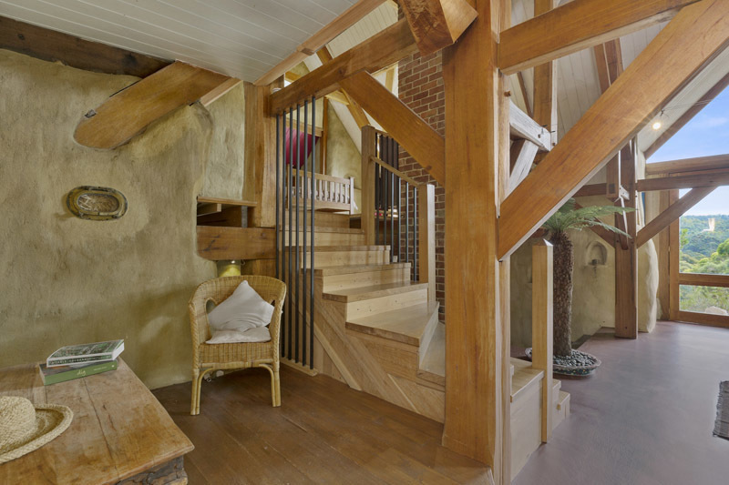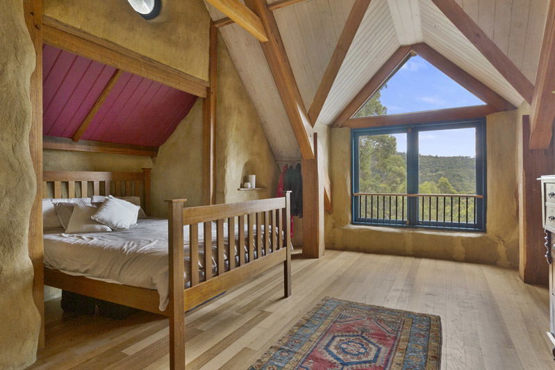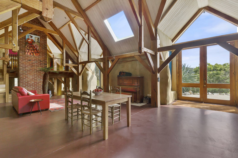This unique, open plan, straw-bale home is sustainably designed with majestic exposed timbers, mosaic features and stunning views from every window.
