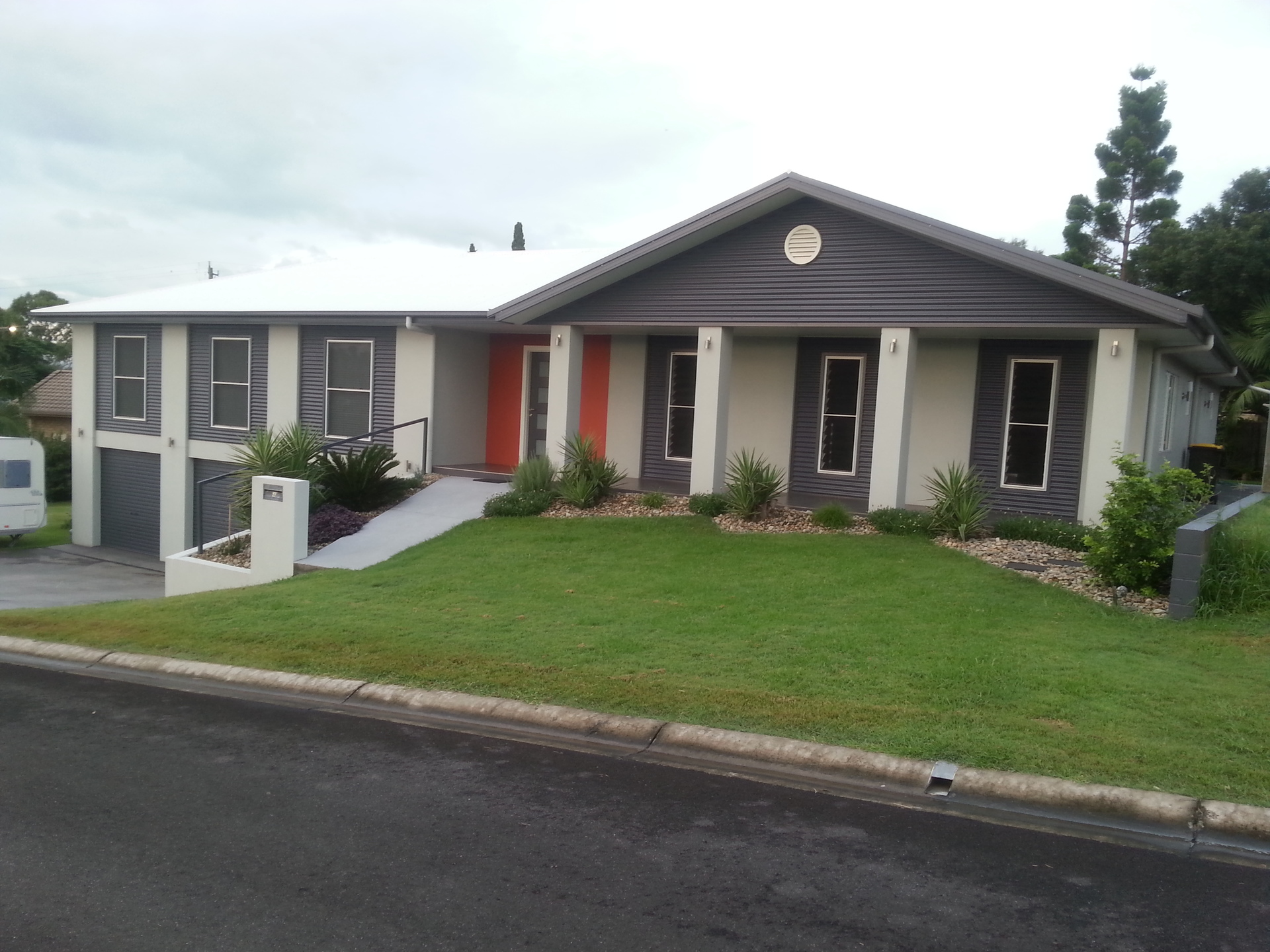 * Large flat open area at side of house, ideal for caravan, boat, truck, swimming pool or all four(45 metre road frontage)