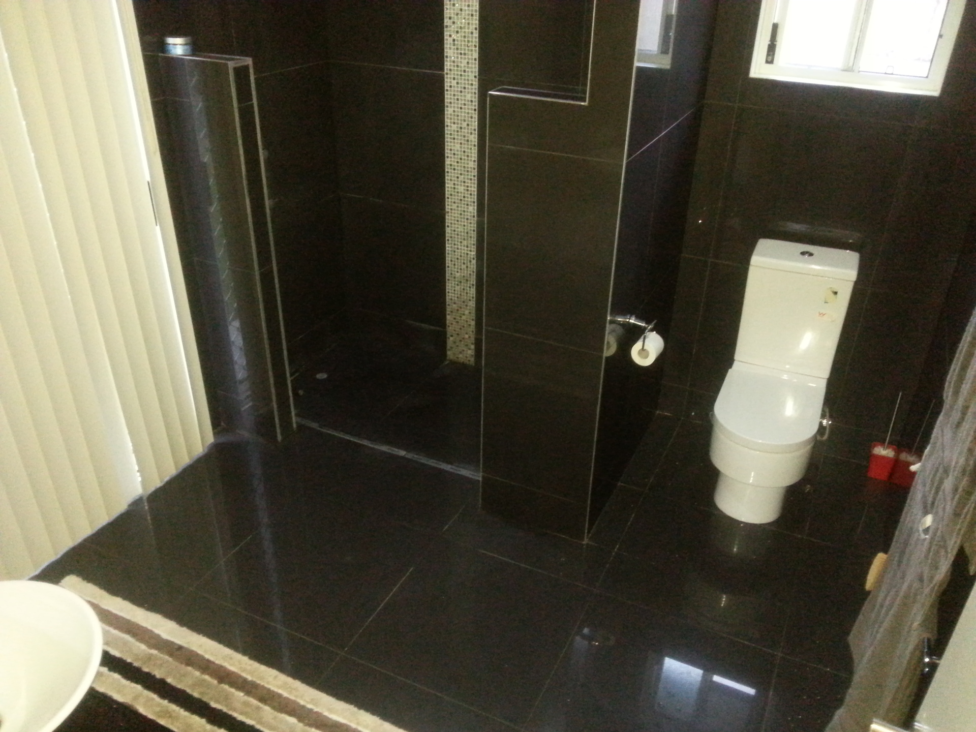 * Large master bedroom with ensuite featuring double open shower; double bowl wall mounted vanity and granite bench top; floor to ceiling 600mm X 600mm Italian porcelain tiles