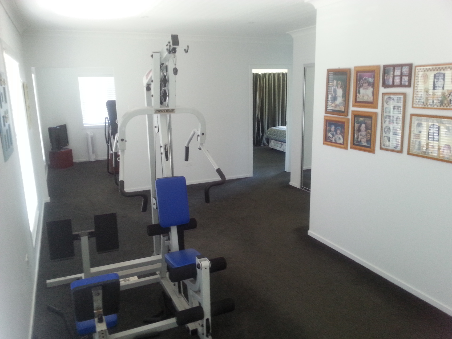 * Large rumpus room/gymnasium; two large mirrored built in linen cupboards