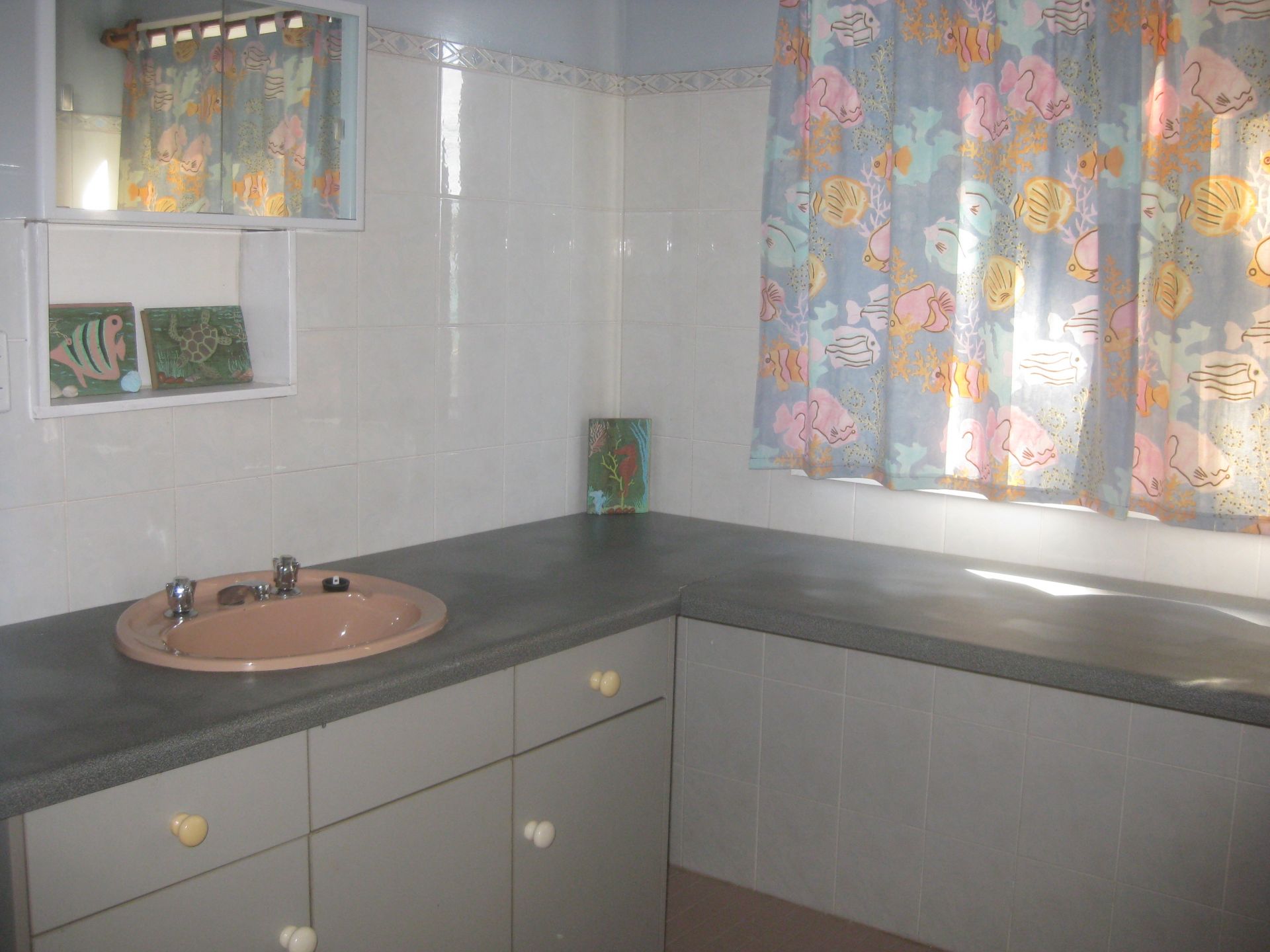 From polished Cypress timber floors upstairs walk down the polished Kwela timber internal stairs. On the lower level you will find the master bedroom and two more bedrooms, all with built in cupboards, fans, ocean views and polished Cypress timber floors. Louvered glass allows sea breezes to cool the bedrooms also. Downstairs also has a large bathroom with shower, vanity and large counter and drawers. A separate toilet is off the hallway which connects to the side entrance door and storage room. This store room is aptly located ready to install solar power, batteries and controls.