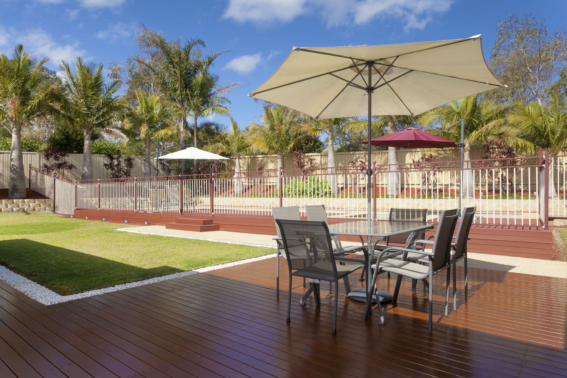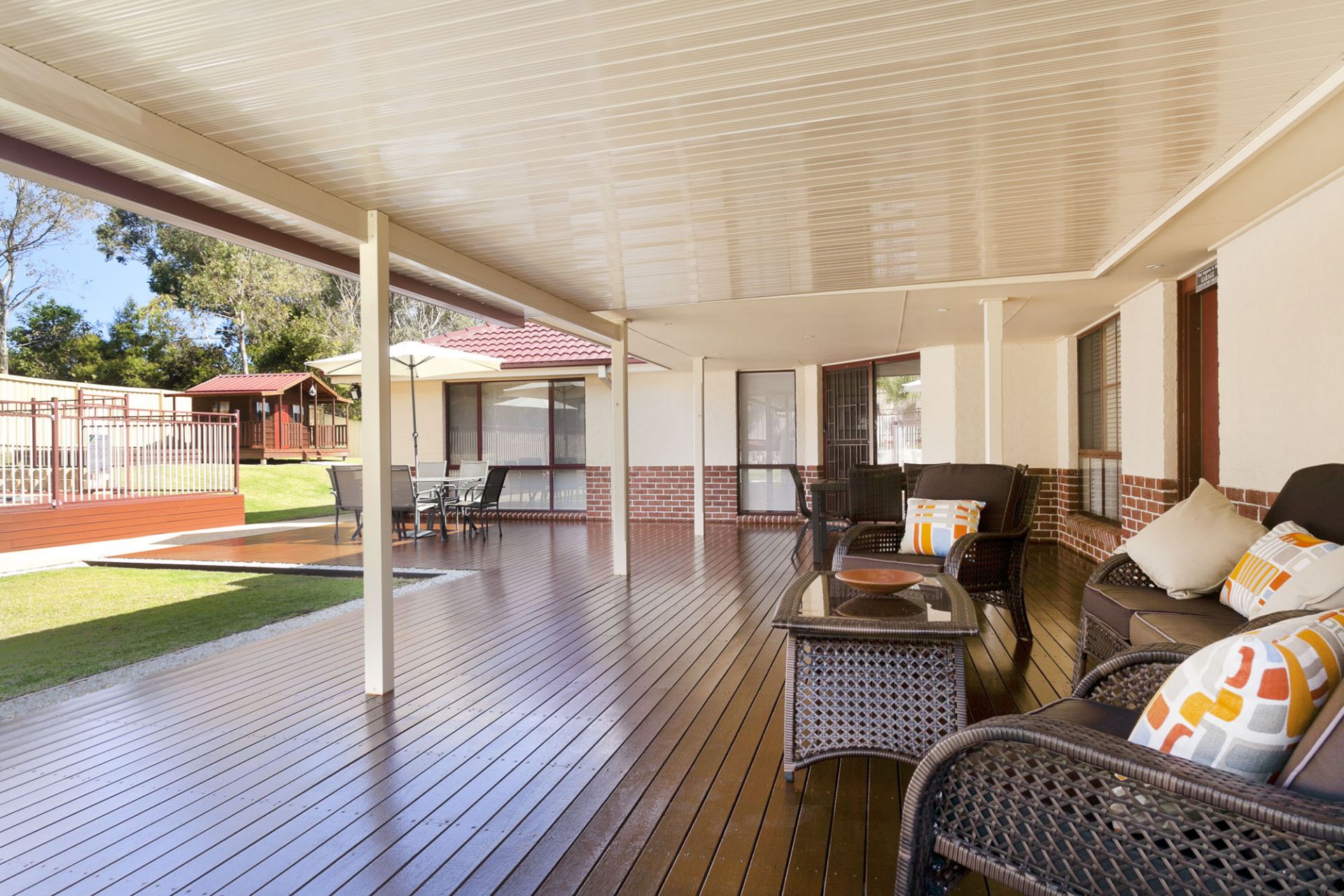 Extensive timber decking with small alfresco extending to a huge span line pergola for seamless entertaining