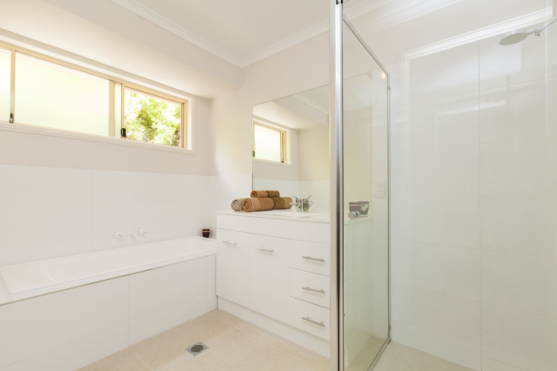 The freshly painted master bedroom features a fully renovated en-suite, walk in wardrobe and is separated from the remaining two bedrooms. These two generously sized bedrooms are both freshly painted with built in wardrobes.