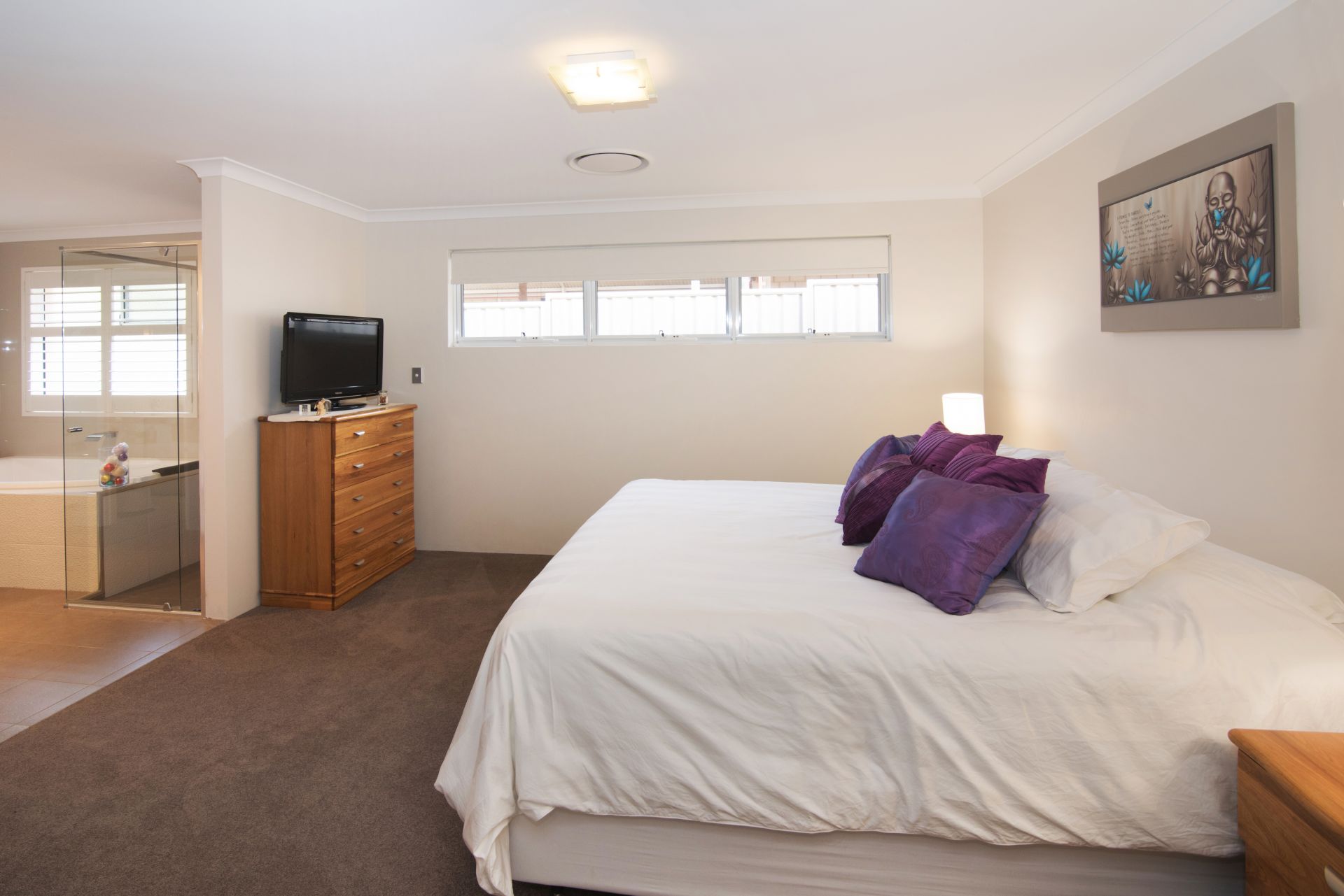 The spacious master bedroom with 5 star ensuite boasts plenty of space with Essa stone bench tops, Spa, double vanity, floor to ceiling tiles and a huge walk in robe. All the bedrooms are spacious with built in robes.