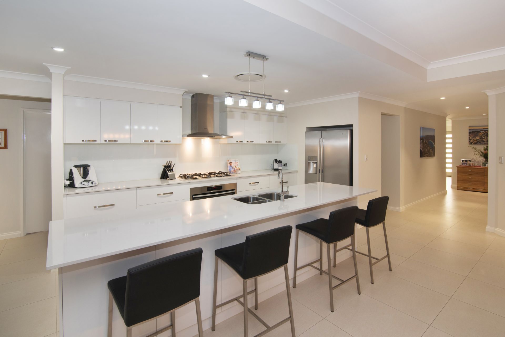 This home boasts a modern stunning kitchen with storage and bench space aplenty, 900mm appliances and Essa stone bench tops throughout. The open plan living space is fresh and modern and includes a white kitchen with open plan dining and living area which flow onto the outdoor entertaining area.