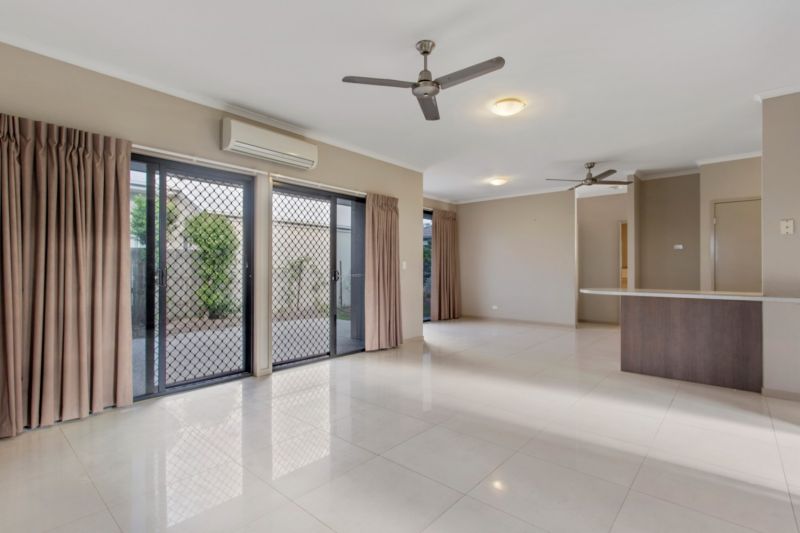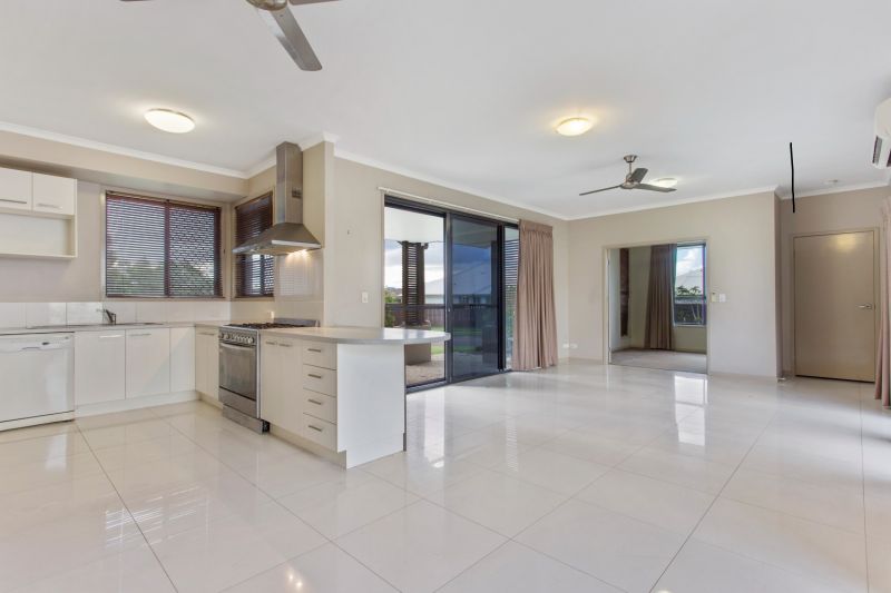 The house is accessed via tinted glass, crim safe security screen sliding doors into a tiled open plan high ceiling living and dining room complete with fans and air conditioner.