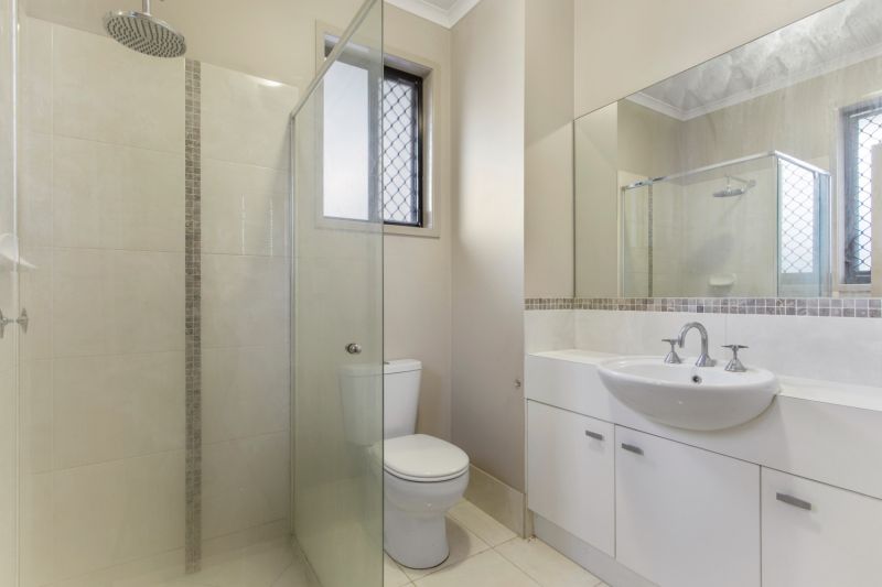 The three large bedrooms are carpeted and contain built in robes and large tinted security screened windows. The main room has a roomy ensuite with plenty of storage. The other two rooms share a large tiled bathroom with a deep bath and plenty of room to move.