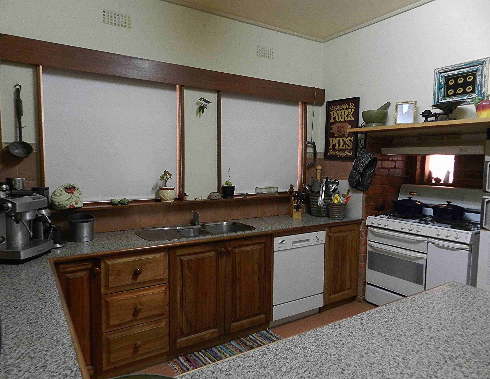 • Residence (37.5 sq): The former bank manager's residence and B&B is at the rear of the building and spans three levels, with front access via a courtyard and steps to a large entry hall. Features include 4 BR with BIRs, 2 bathrooms, sunroom, office/study (or 5th BR); well-appointed kitchen with adjacent washroom/toilet; large lounge/dining room opening onto a spacious balcony/deck - great for entertaining; laundry, cellar, and a large storeroom that would make an ideal artist's studio, off-street gallery or movie theatre.