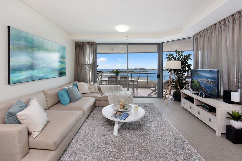 Upon entering the apartment the panoramic views down the Pumicestone Passage are breathtaking.