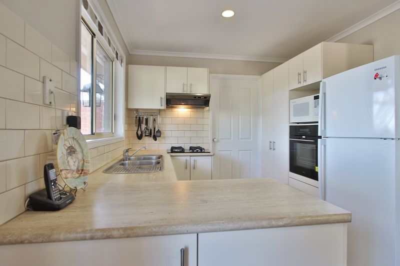 Move in and enjoy this light and airy , open plan lounge, dining and kitchen. Two good sized bedrooms with built in robes. The large bathroom also services the main bedroom. Separate toilet and laundry. There is a large covered deck area which leads to an easily maintained garden. Automatic watering system back and front. Remote double garage. Gas ducted heating and spit system air-conditioning. A must see.
