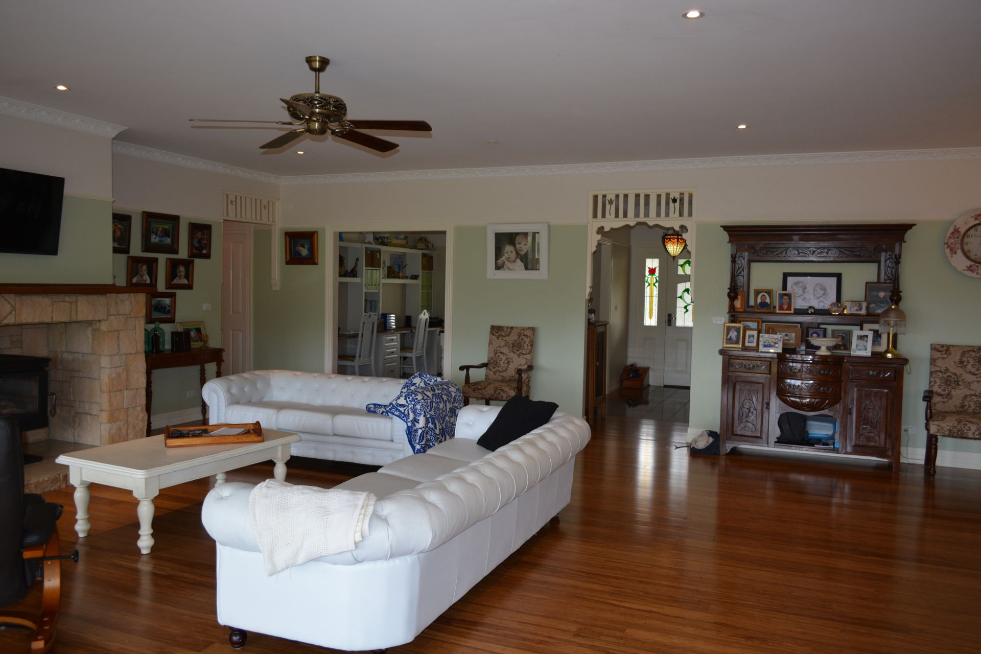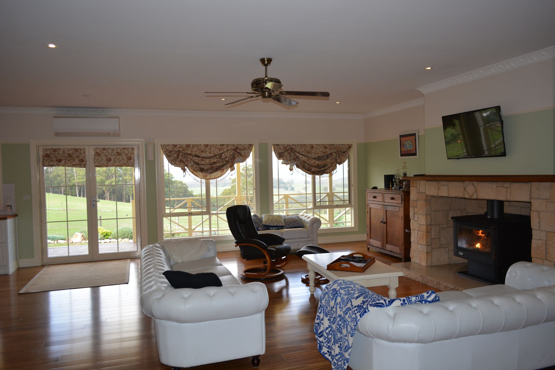 Large second living room with wood heater