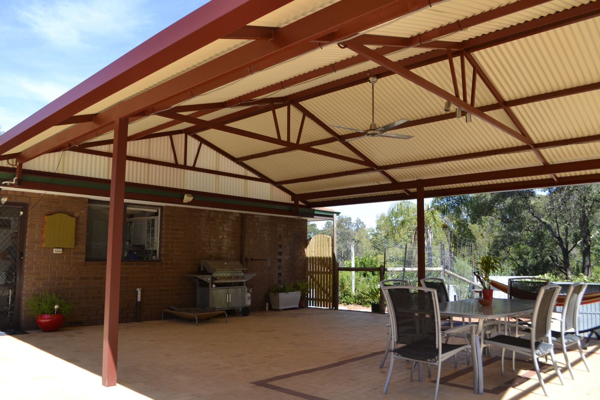 The backyard features a large alfresco entertaining area on a slightly elevated paved area overlooking the low maintenance backyard. The pitched alfresco patio area is a great place to entertain with friends and family which will make everyday summer meals a good excuse to get outside.