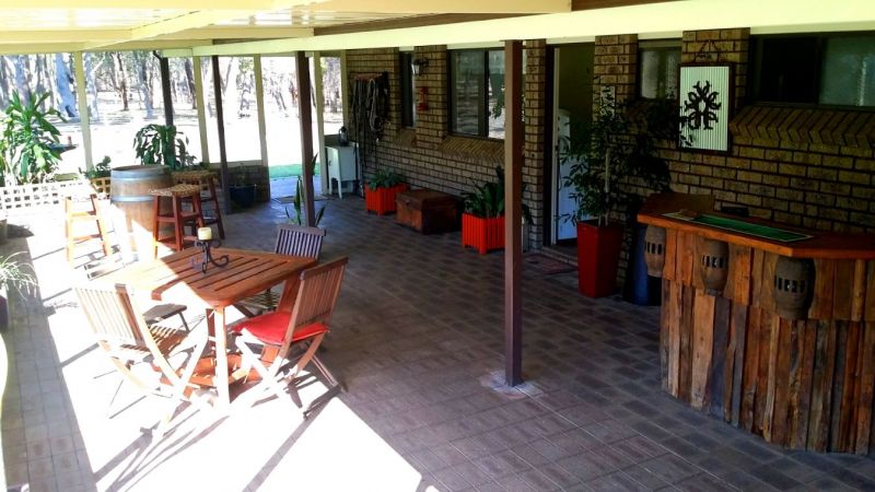 Wrap around verandas with a large enclosed patio. Reticulated lawn from a bore as well as established fruit trees including mandarin, orange, lemon, mango and fig amongst others.