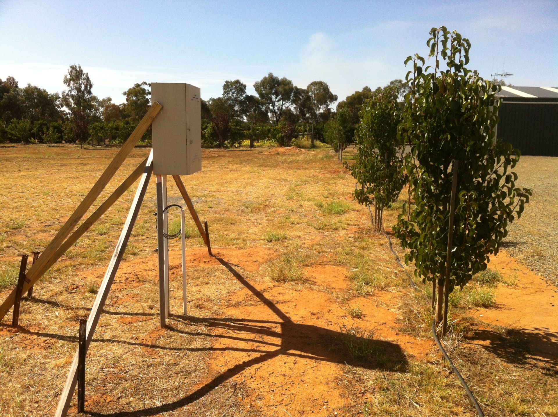 Telephone cabling from street pit to electrical house power box and to shed.