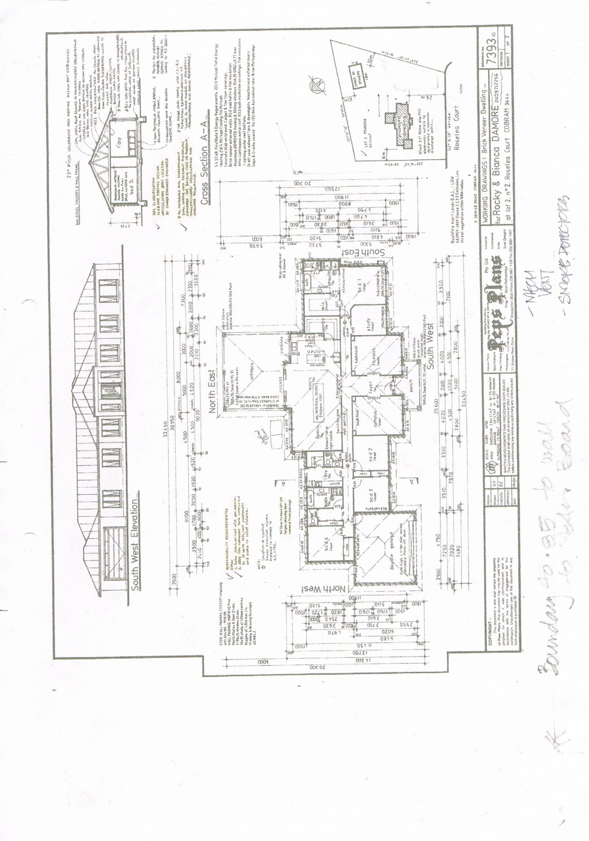 Plans can be obtained as approved on expired building permit for 3 bedroom house from designer and council on application. See photo attached.