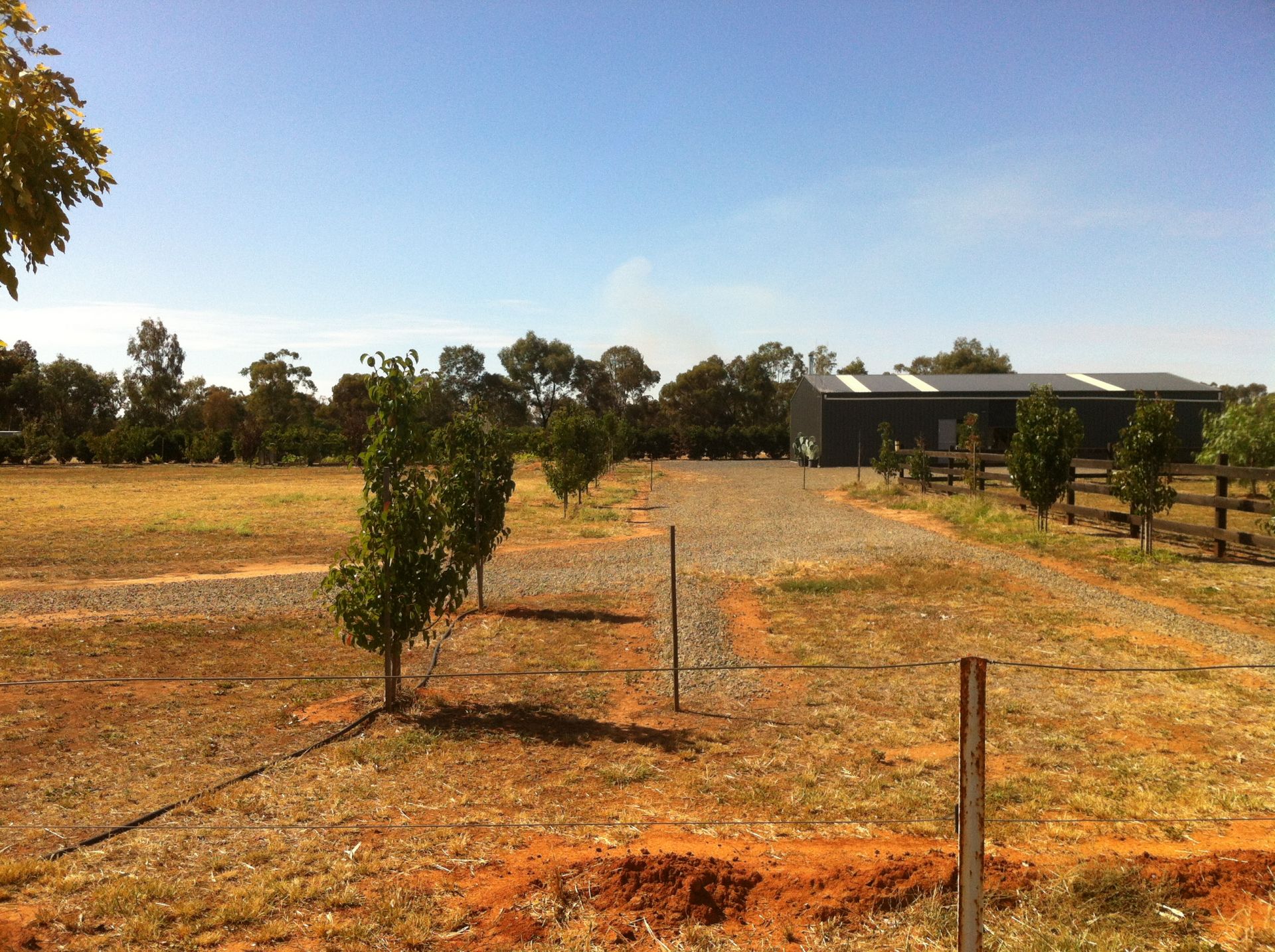 Blue metal graded gravel driveways and hardstand around shed area.