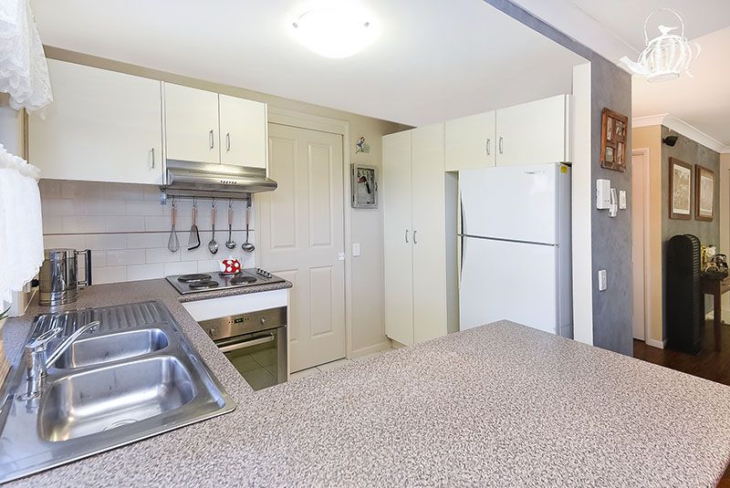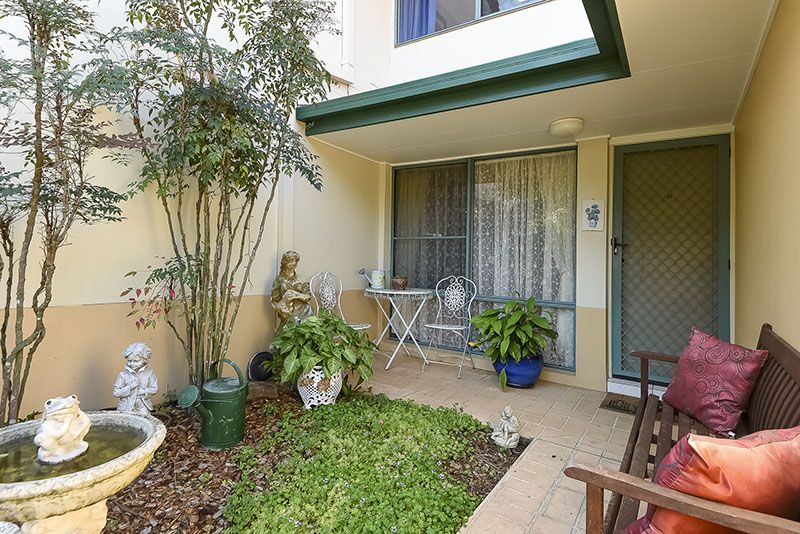 In a quiet, elevated position capturing breezes this rendered brick townhouse is set far back from the road and is in a secure gated complex with intercom.