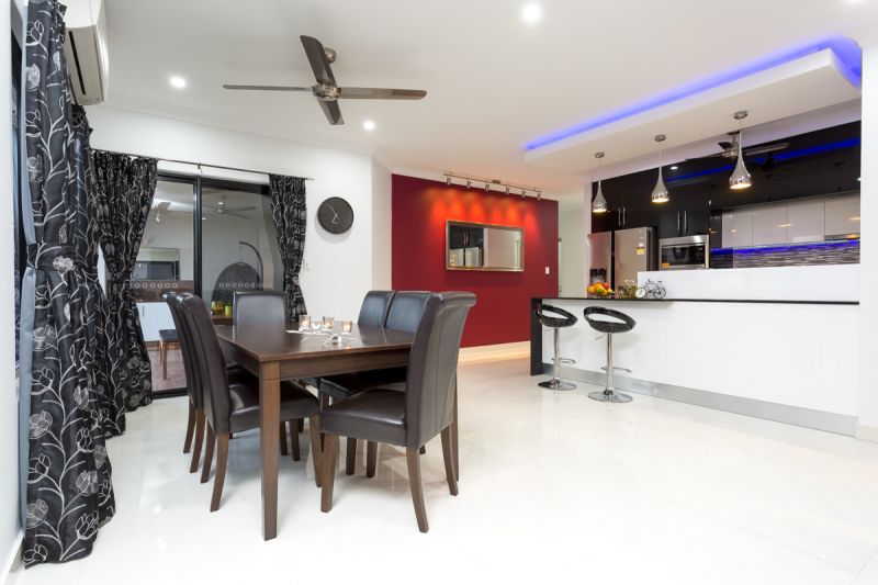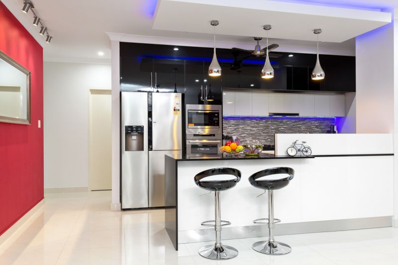 - Sleek, modern gourmet kitchen with fitted ambient lighting, premium appliances and stone benches is ideal for the creative chef of the family