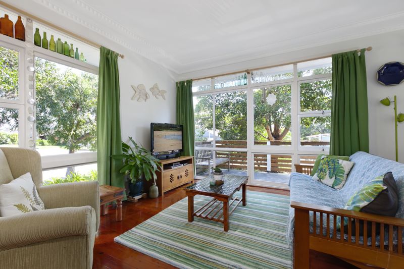 This beautiful 3 bedroom home with immaculate gardens is just waiting for you to move in. The lounge and dining room is filled with natural light from the large windows, partnered with the 9ft ceiling it gives this space a welcoming open feel. Polished wooden floors throughout add to the open, unencumbered style of this house. A recently renovated bathroom complete with a stand alone claw foot bath and wooden features is stunning. There are 3 double bedrooms which are bright and airy, looking out onto manicured side gardens. Outside a huge verandah wraps around the house and a newly constructed covered deck is ideal for outdoor family entertaining and barbecuing in all weathers. There is an external laundry located at the rear of the house and an outdoor shower which is great for cooling off on a hot summer's day. A double driveway offers off street parking alongside low maintenance front gardens. Banana palms and clumping bamboo create an oasis feel in the back yard and vegetable beds are brimming with produce. The tropical style gardens boast a number of fruit producing plants such as bananas, mangoes, kiwis, pineapples and papayas as well as an established herb garden.