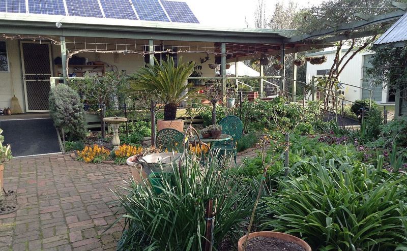 An orchard of peach and plum, apricot and apple trees in the garden topped off by well established flower and vegetable gardens.