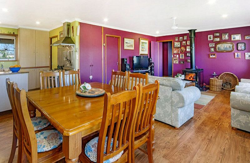 In the spacious dining area and lounge room you can lose yourself gazing at the wood burning fire or out the window at the serene rural view.