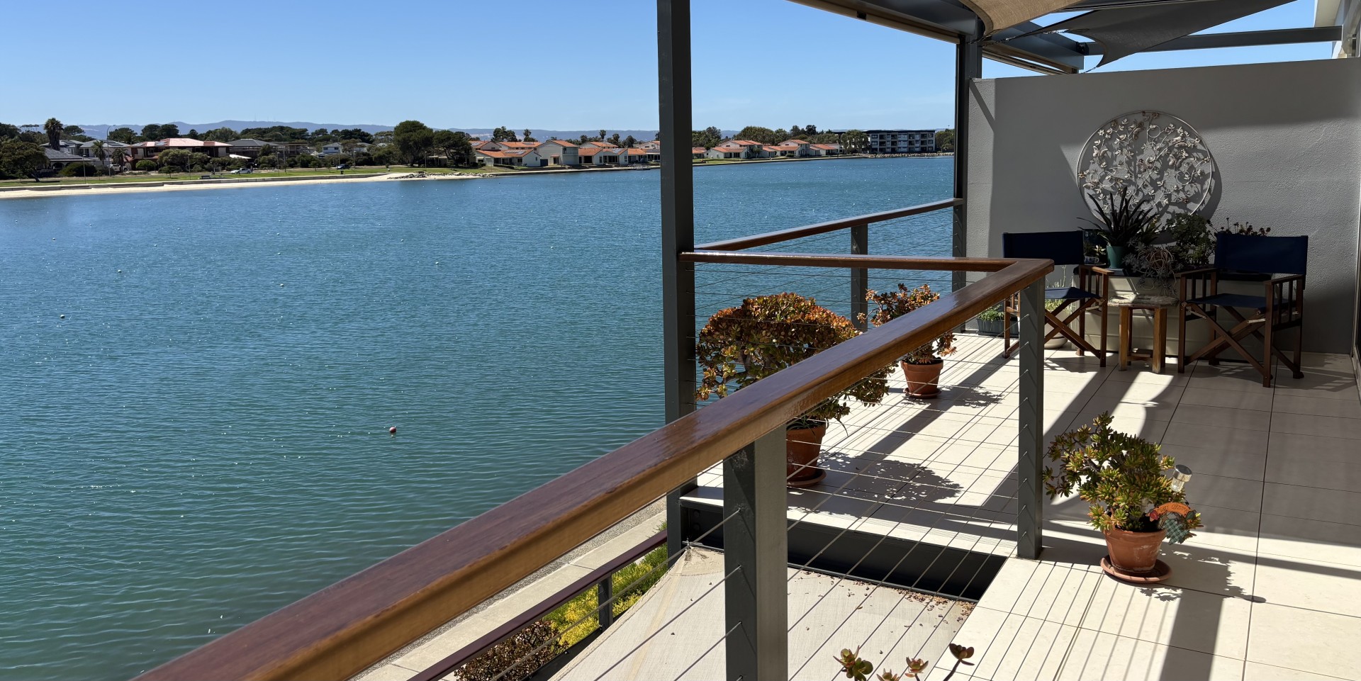 Being able to enjoy evening meals on the balcony overlooking the beautiful lake and spectacular northern views is a highlight of this apartment.