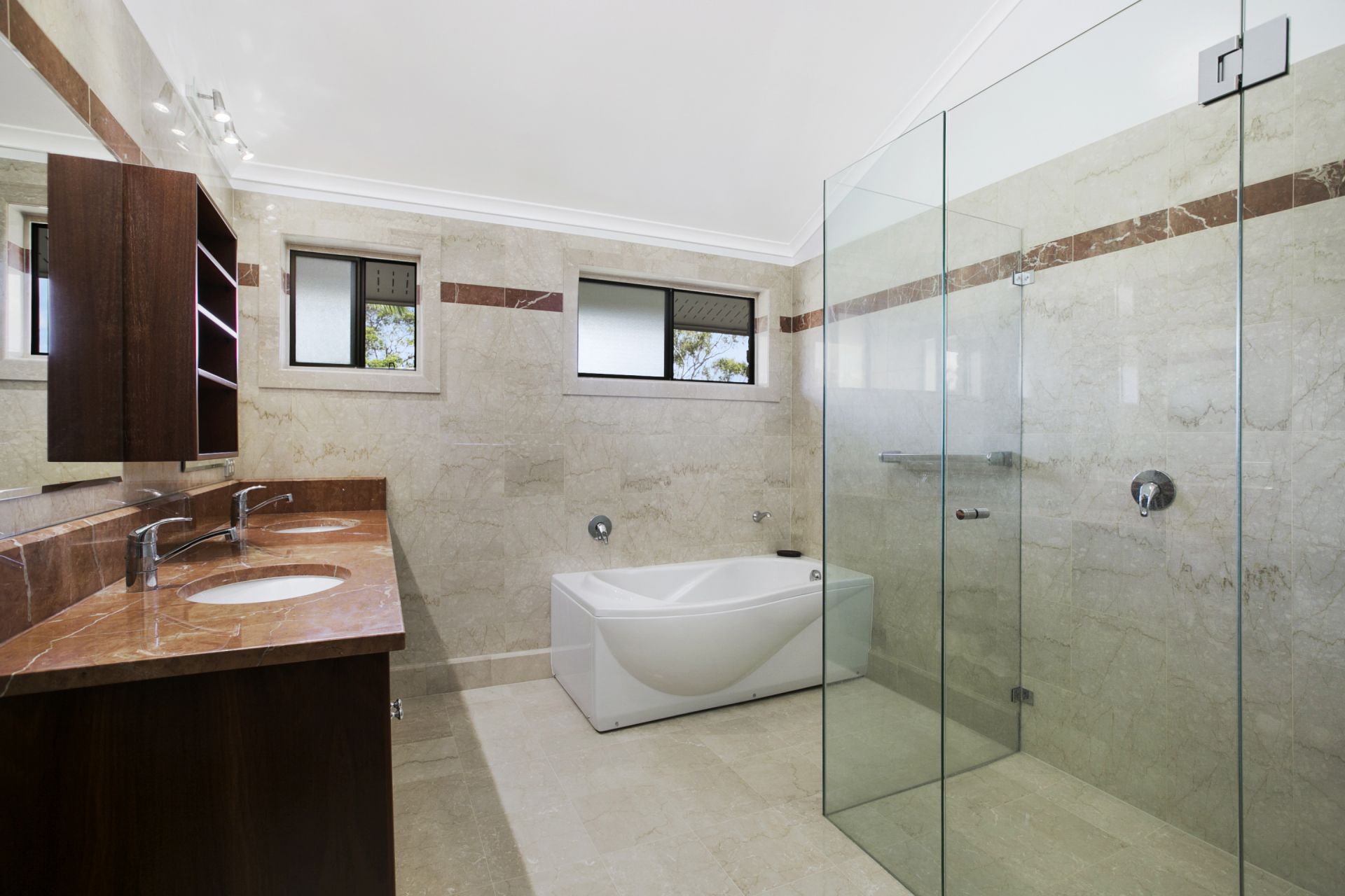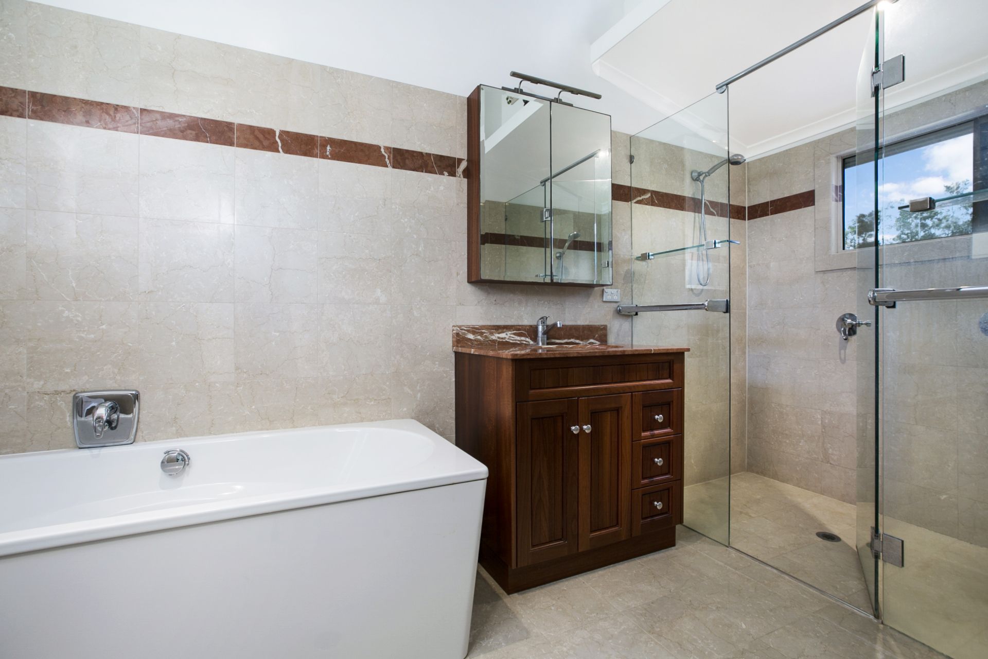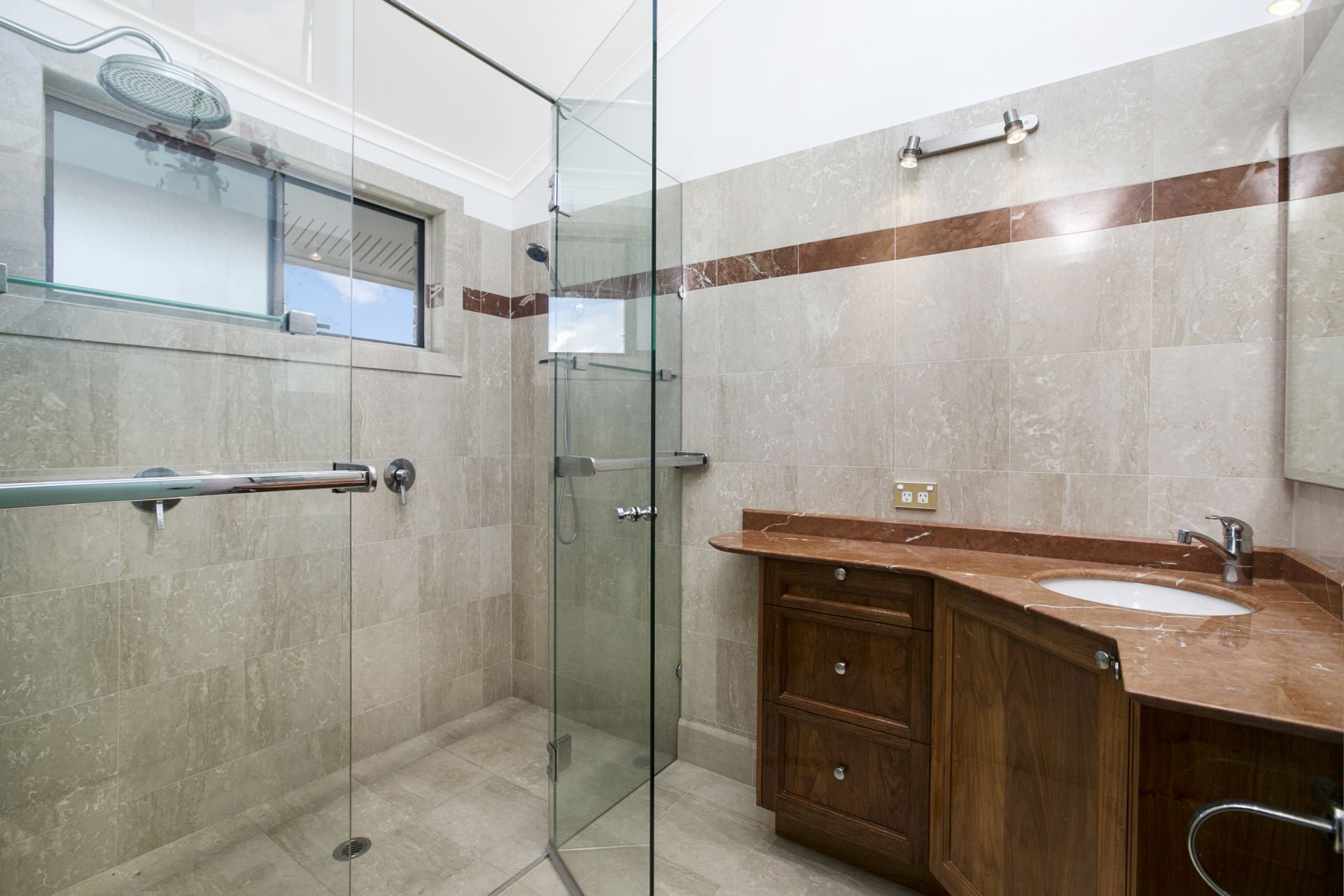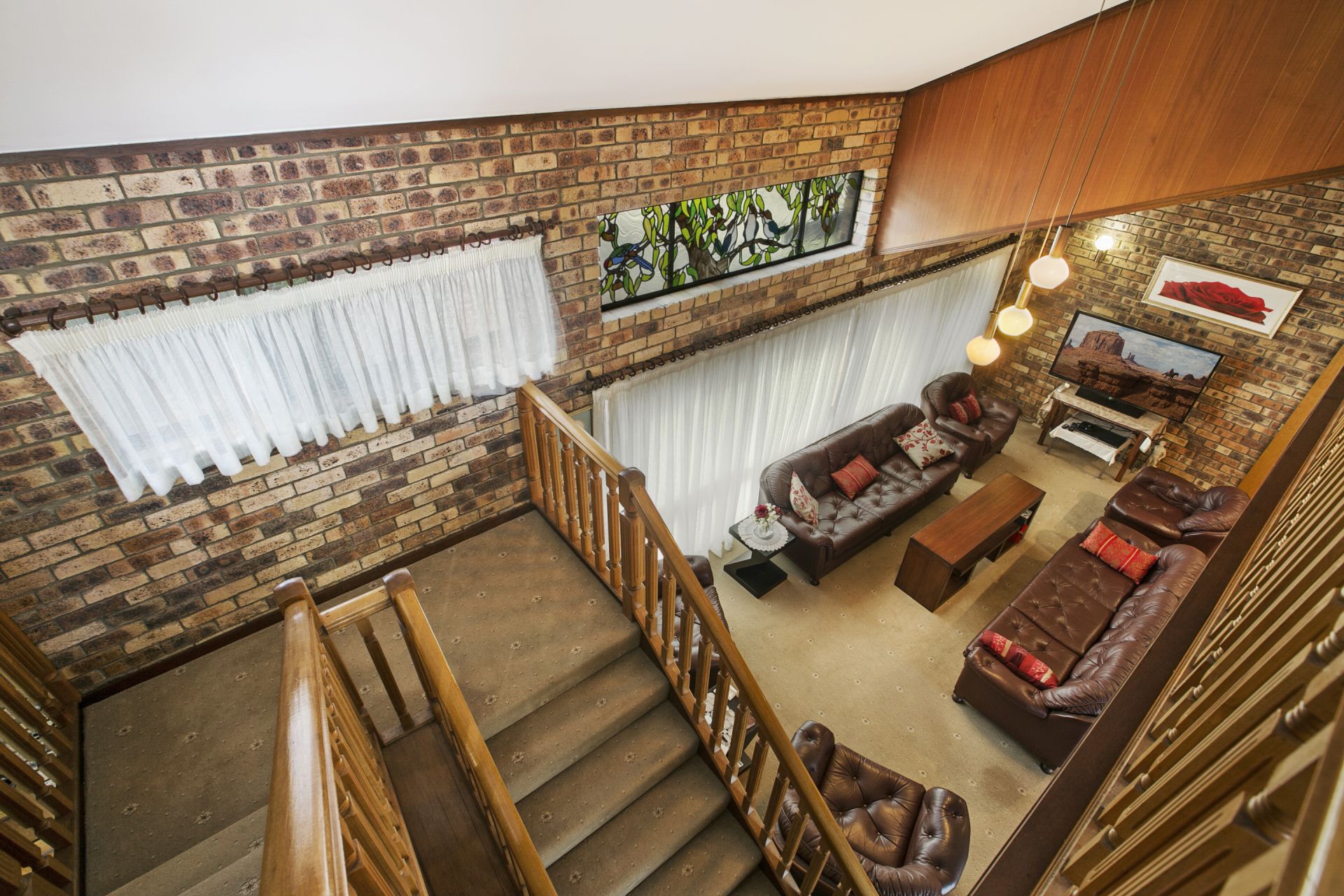 All three bathrooms upstairs have been immaculately refurbished. The interior of the home presents beautifully. There is a clever use of hand made lead lighting throughout the house which together with the exposed double brick interior gives the dwelling a lovely warmth and stately feel.