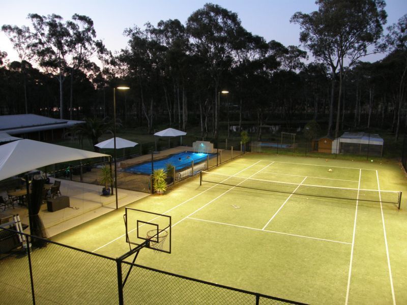 * Synthetic grass tennis court with lights (full 100mm concrete slab)