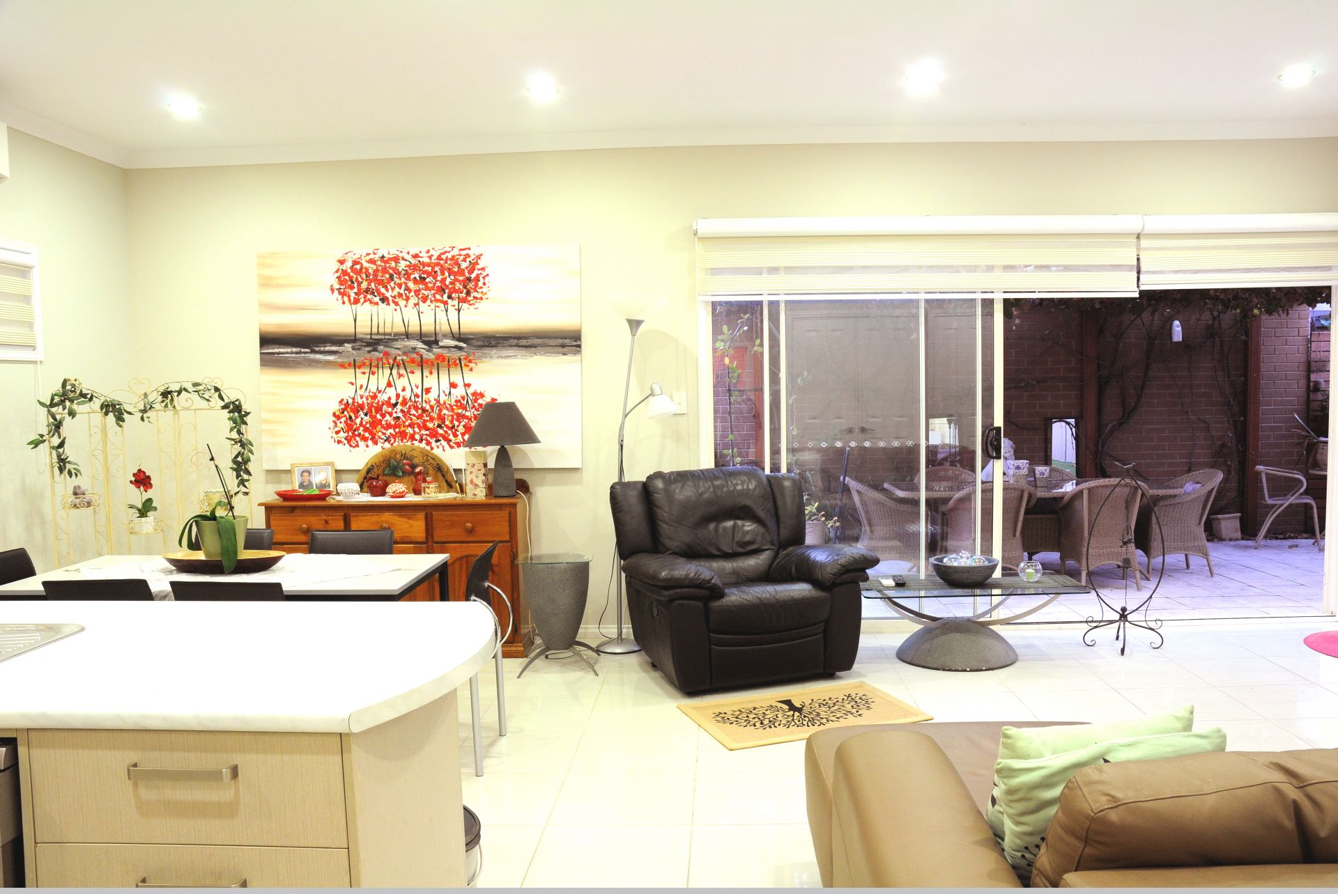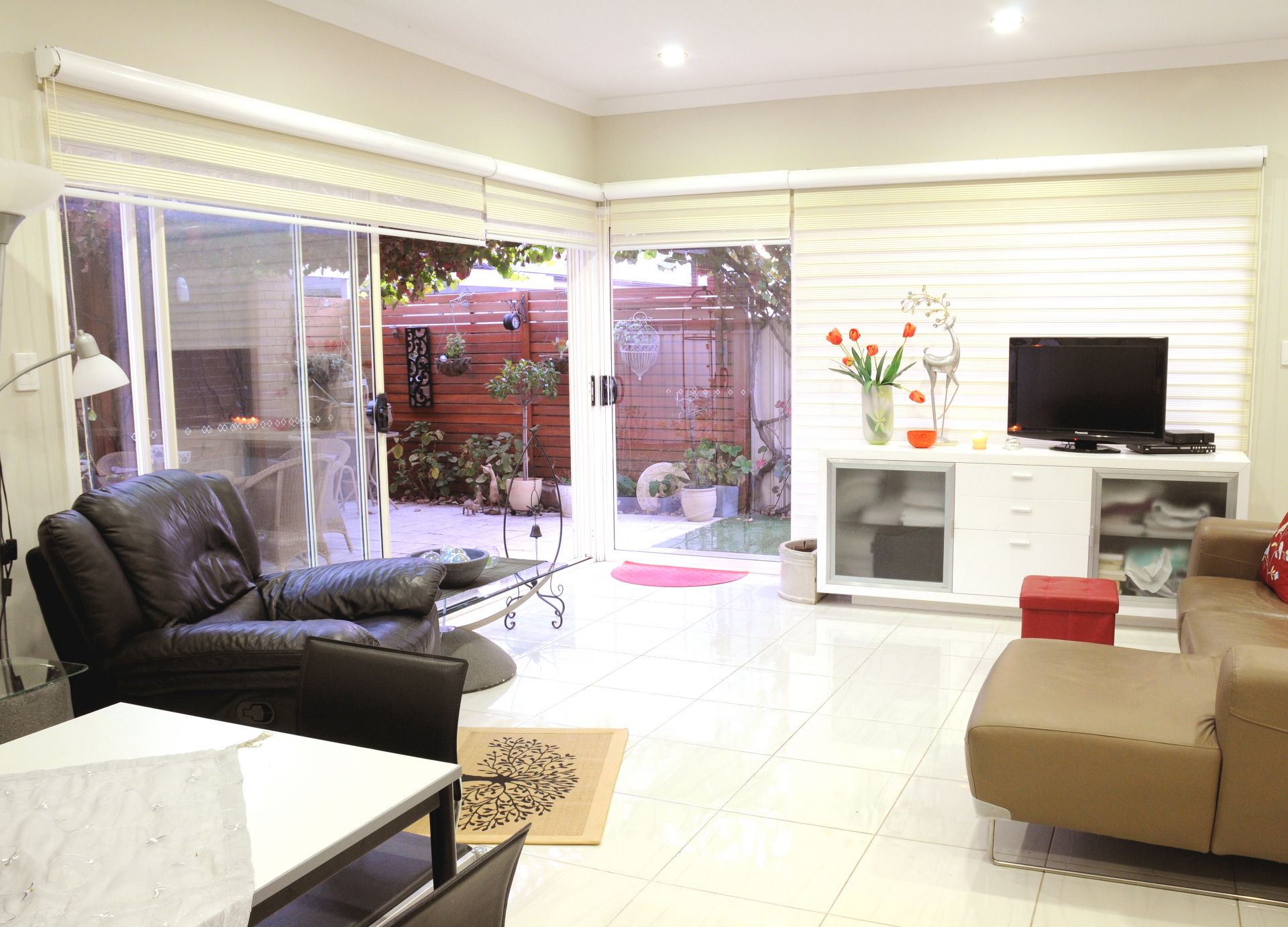 The stylish living area makes the most of winter sun. Sliding doors extend fully to join the living area with the rear patio which is ideal for BBQ's, entertaining friends, or alfresco dining.