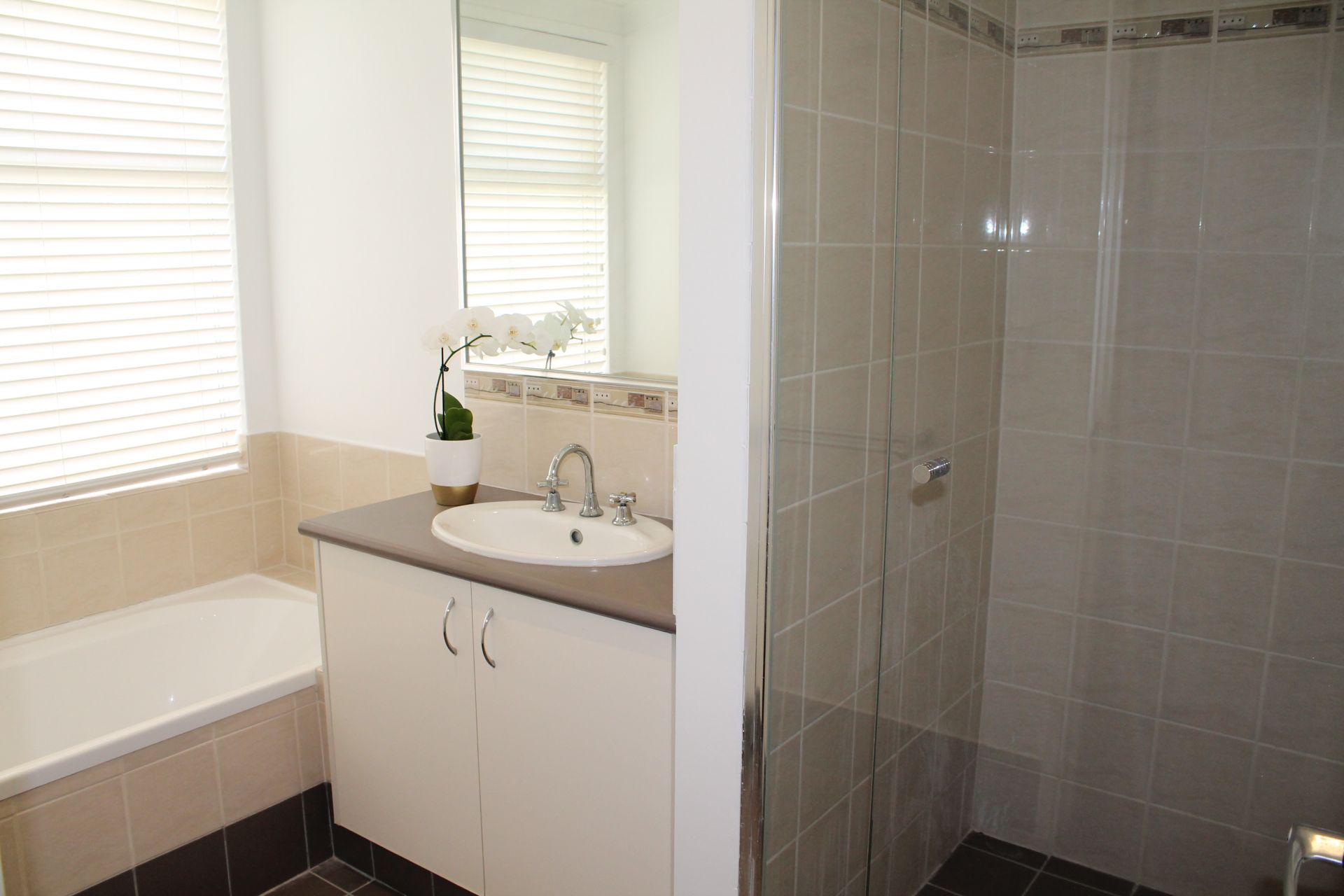 • Main bedroom with large ensuite and separate toilet, shower (glass shower door) and vanity