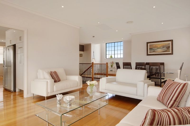 * Sweeping Blackbutt Hardwood staircase leads to formal and informal living areas and food lovers' kitchen.