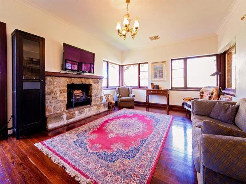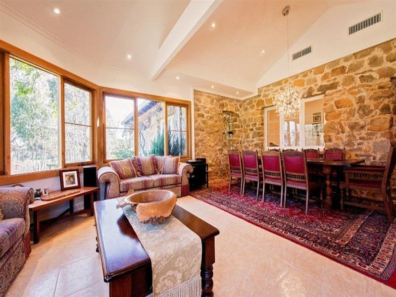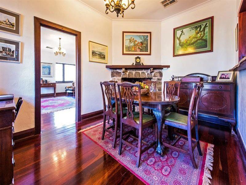 The kitchen leads through to a formal dining room featuring a magnificent granite fireplace with mantel piece. A large jarrah-lined opening connects the kitchen with the dining area as a unique serving area.
