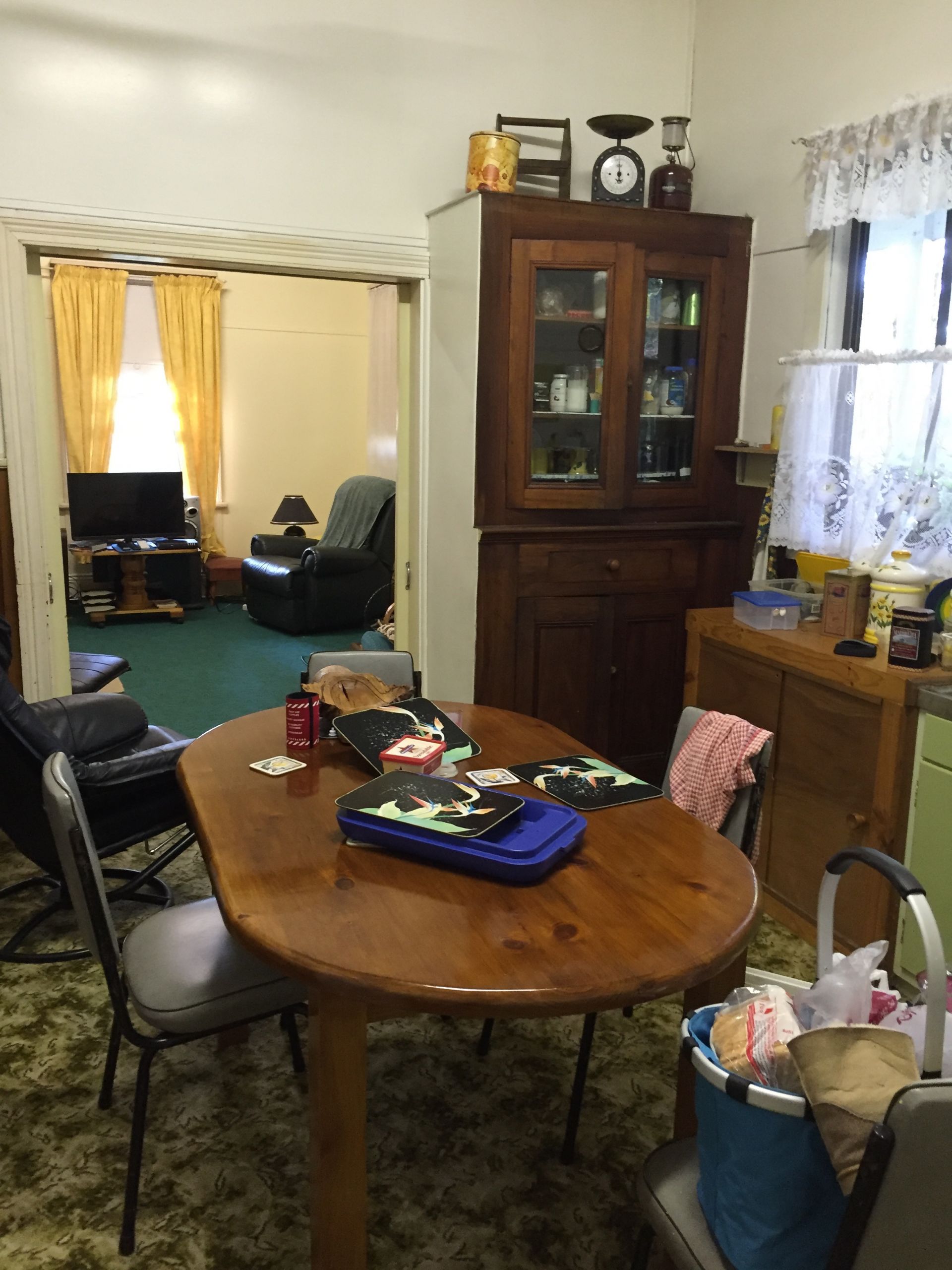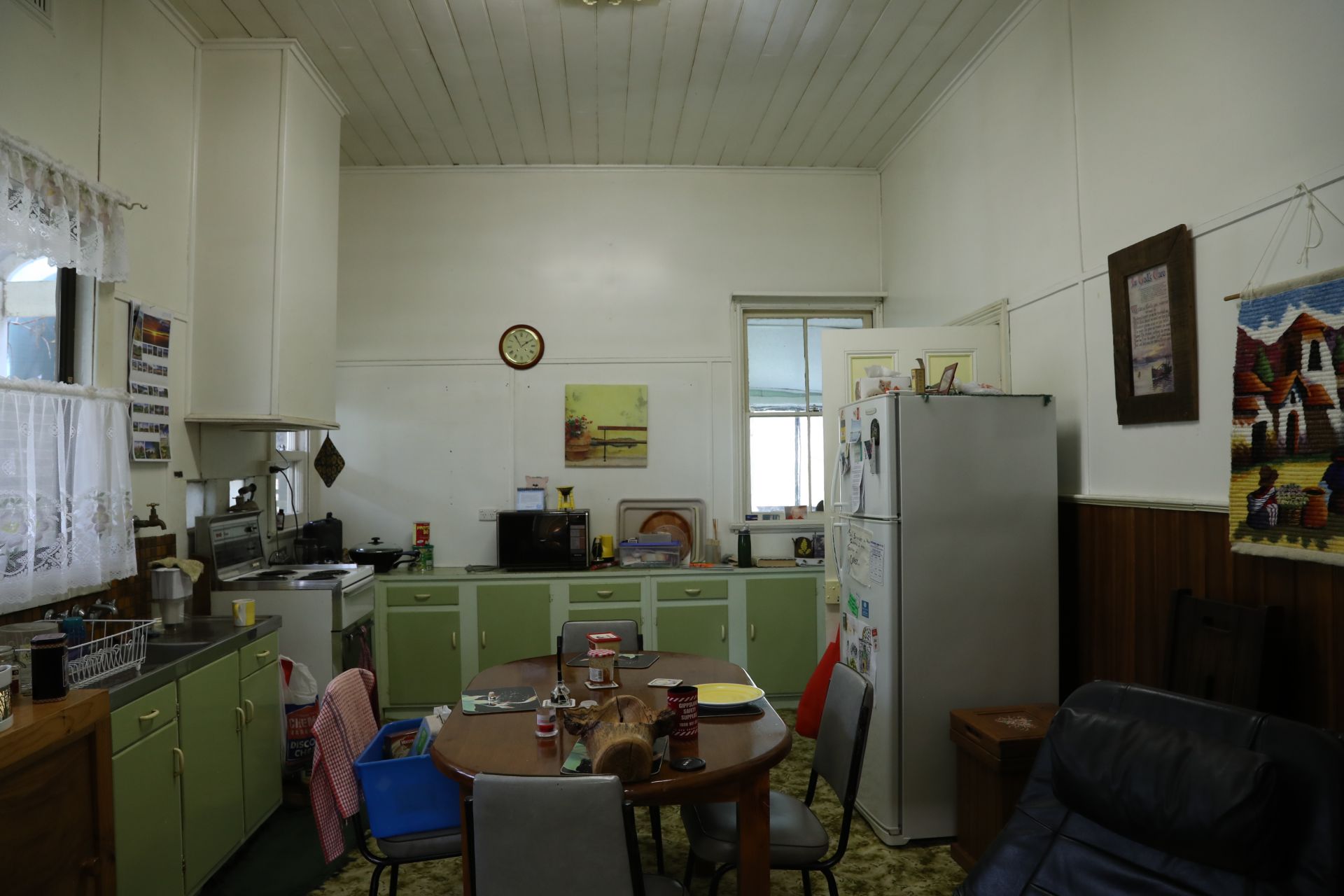 Containing 3 bedrooms, with a central hallway and open kitchen and living areas. Large ceilings keep the rooms aired and cool in summer. The large dining/kitchen/lounge area is comfortable and bright with views of the mountains from the living room. Wood heating and air conditioner keep these rooms warm in winter and cool in summer. The bathroom, laundry and back rooms are in need of some loving care, this provides scope for alterations if desired by the new owners to enable further enjoyment of the beautiful parcel of land it sits on.