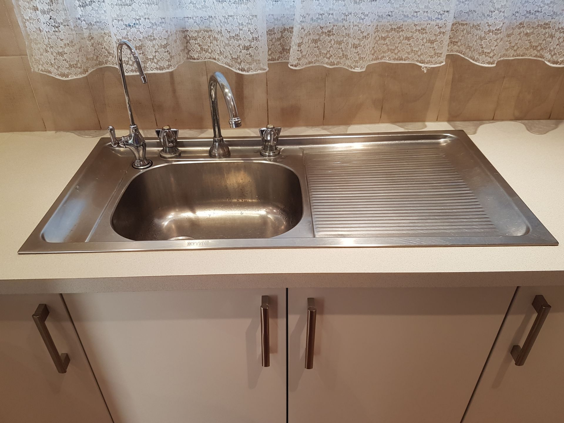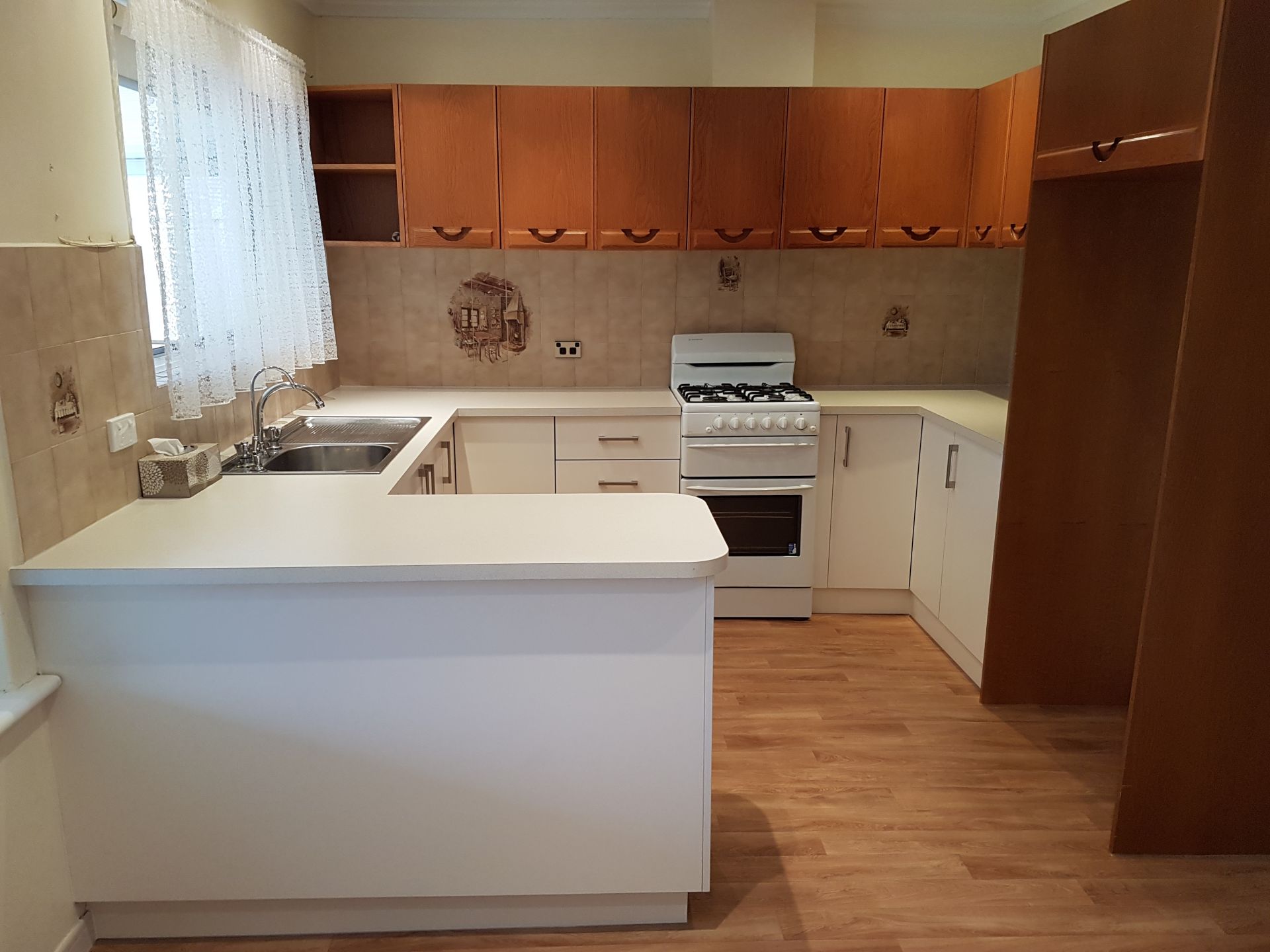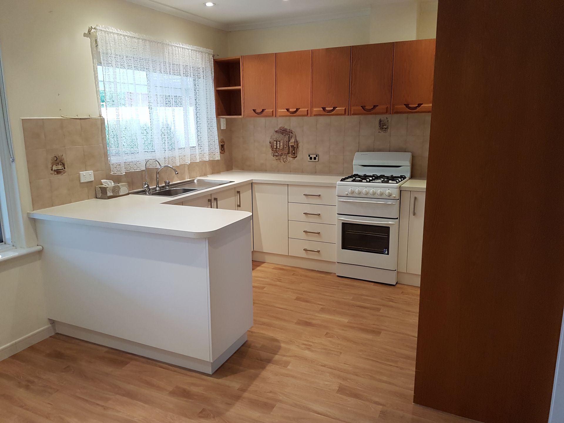 * Kitchen with dining has gas cooking and plenty of cupboard space.