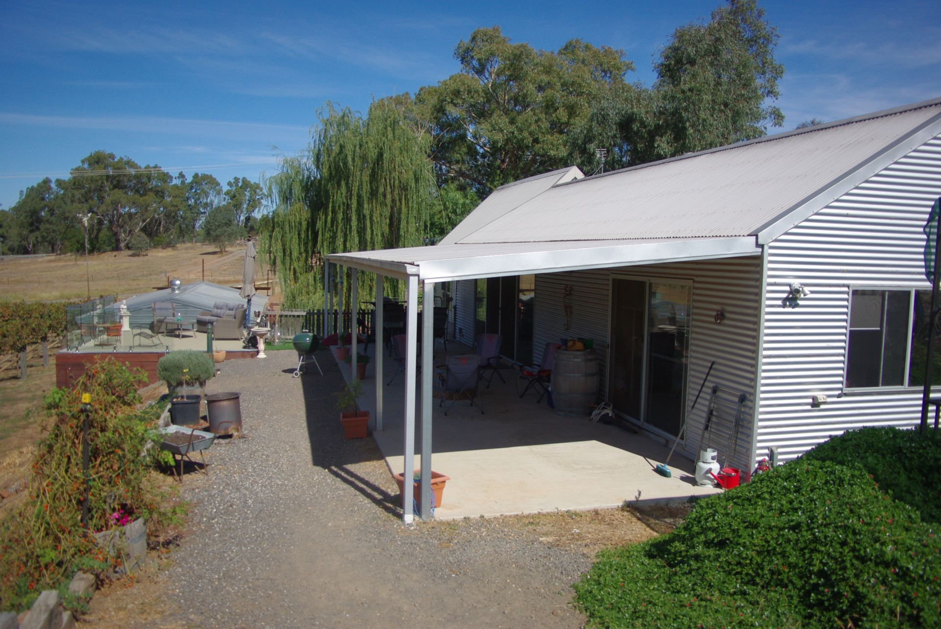 The home is finished with horizontal corrugated galvanised iron and features 2 large bedrooms with WIR's and ensuites, the main bedroom containing a 20 square metre mezzanine. The family sized open plan kitchen, dining and lounge area and second bedroom feature a delightful cathedral ceiling. The modern kitchen has gas cooktop, electric wall oven, dishwasher, perfectly positioned pantry, stainless steel benchtop and splash backs. The laundry offers plenty of bench space, BIC, linen cupboard, storage shelving and clothes airing. The ever present aspect from inside the home is the view, looking through the 11m x 5m outdoor entertaining area and sun deck to the splendid post card view over the vines to the river.