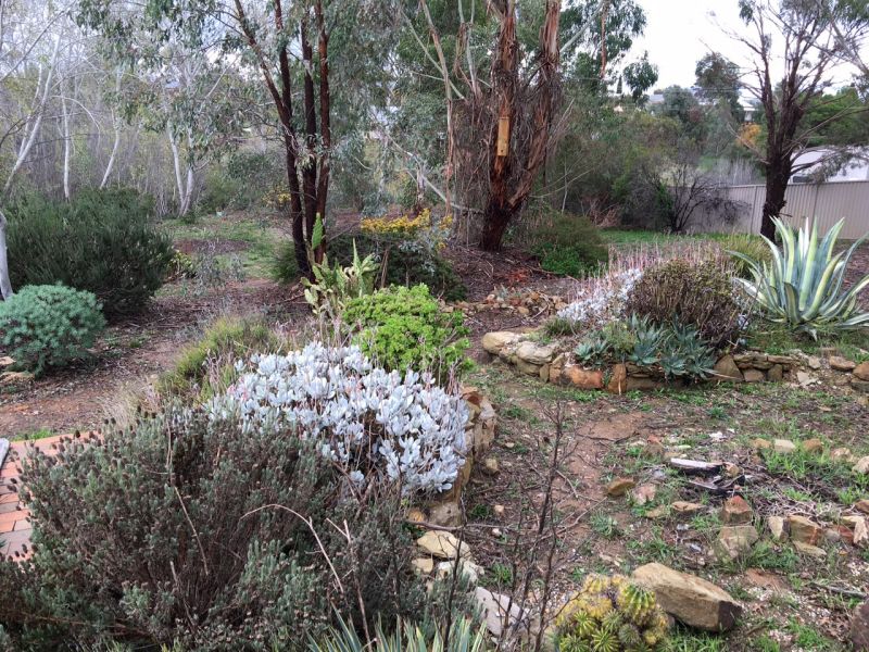 Northerly aspect with established gardens and trees, including some fruit trees.